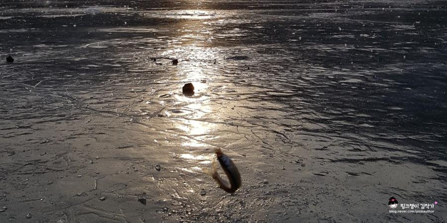 낚시원정대와 함께 간 얼음 오아시스엔 맹렬했던 겨울 날씨는 가셨지만, 여전히 두 뺨을 할퀴는 칼바람이 불고 있었다. 덕분에 두텁게 얼어붙은 얼음은 쉽게 녹아내리지 않았다. 그렇다. 낚시 하기에 딱 좋은 날씨, 완벽한 조건이었다. 낚시터에는 설날 연휴를 만끽하러 온 사람들이 이미 자리를 잡고 앉아 각자의 겨울을 보내고 있었다. 낚시 원정대 멤버들과 적당한 곳에 자리를 잡고, 얼음구멍을 뚫는 남편의 수고로움이 더해져 낚시 준비는 순조롭게 진행되었다.