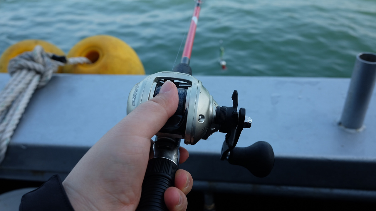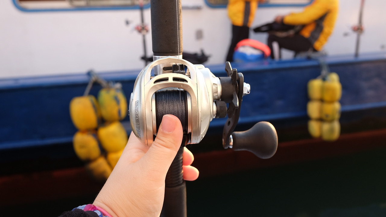 @핑크쟁이김작가 주꾸미 낚시할 때 베이트릴을 사용한다. / 제일 먼저 주꾸미 잡은 남편