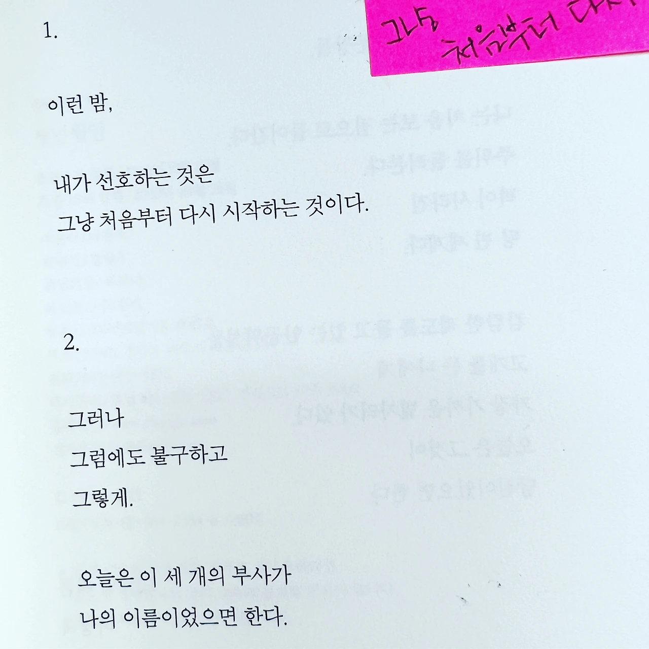 언젠가 봄에 읽던 곳을 다시 봄처럼 본다. 읽어본다. 이장욱의 문장을.