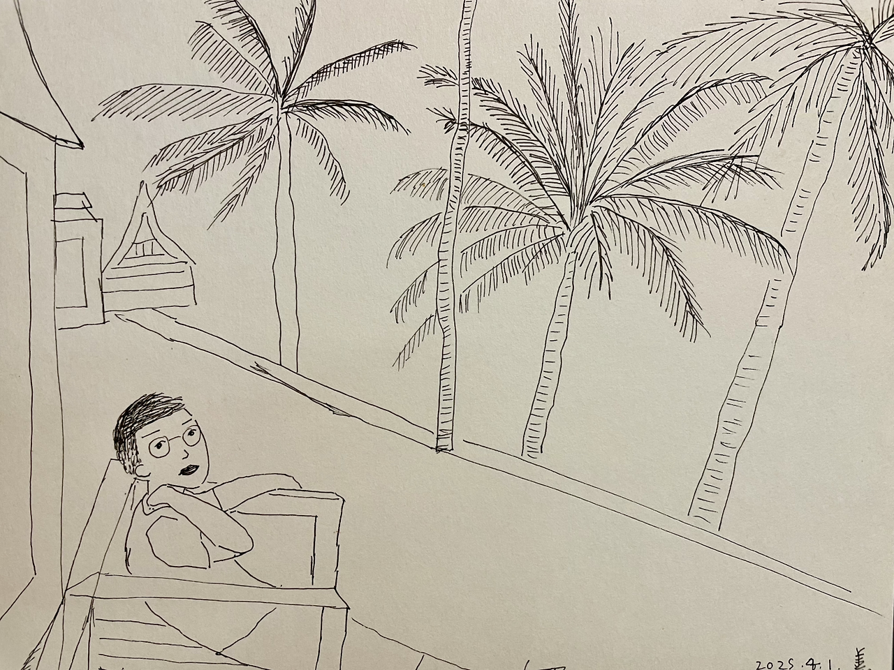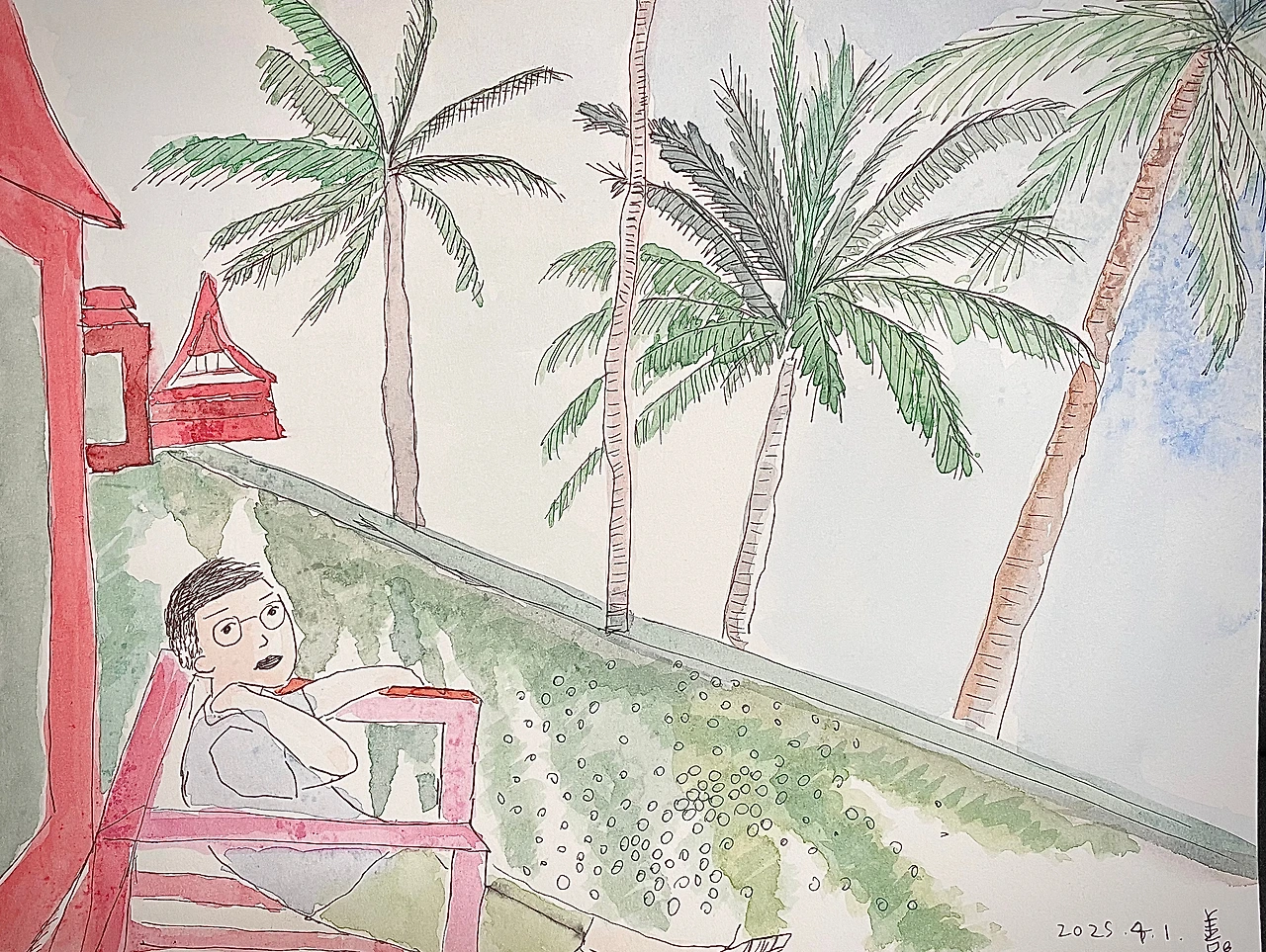 물에 비친 야자수 잎을 표현하고 싶었다.