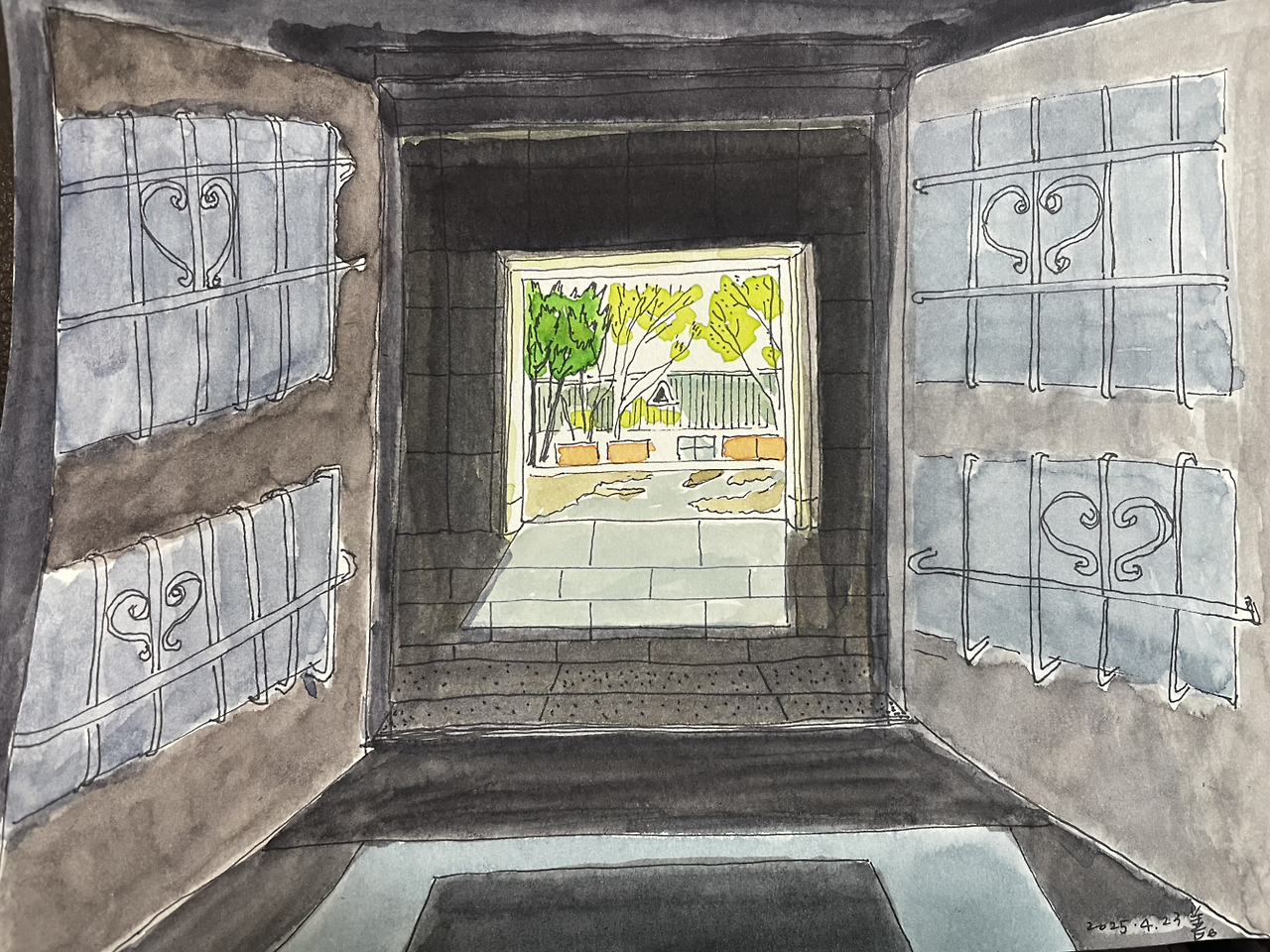 어두운 실내와 밝은 바깥을 표현하고 싶었다.