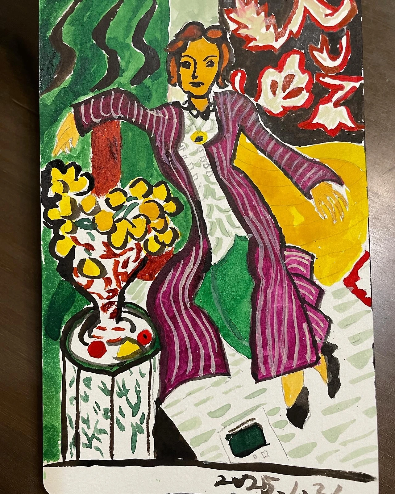 색 조합의 다양성과 선과 점 면을 자유롭개 쓴다는 것을 배운 것 같다. 대 마티스 님께...
