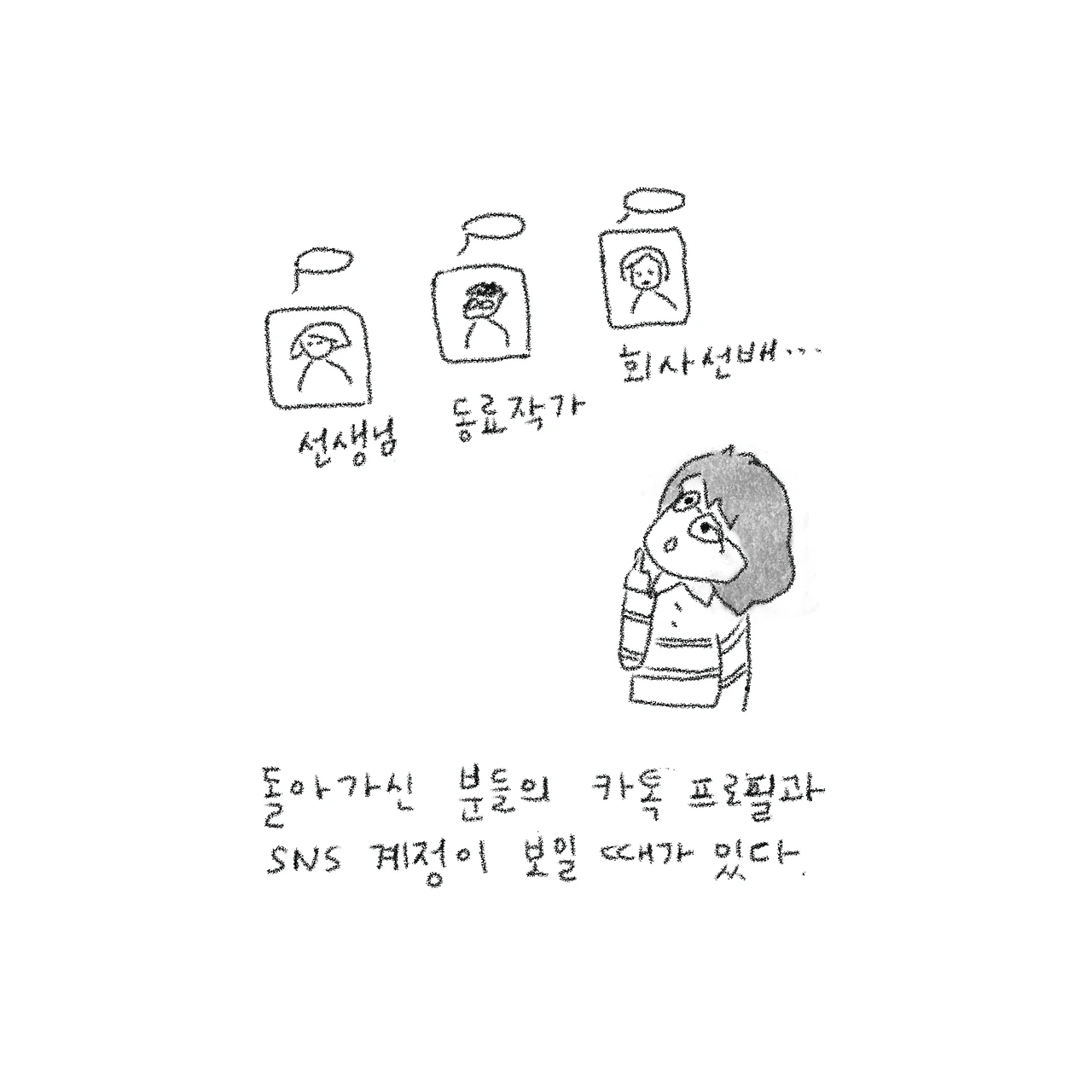 돌아가신 분들의 카톡 프로필이나 SNS계정이 보일 때가 있다. 선생님, 동료 작가, 회사 선배....