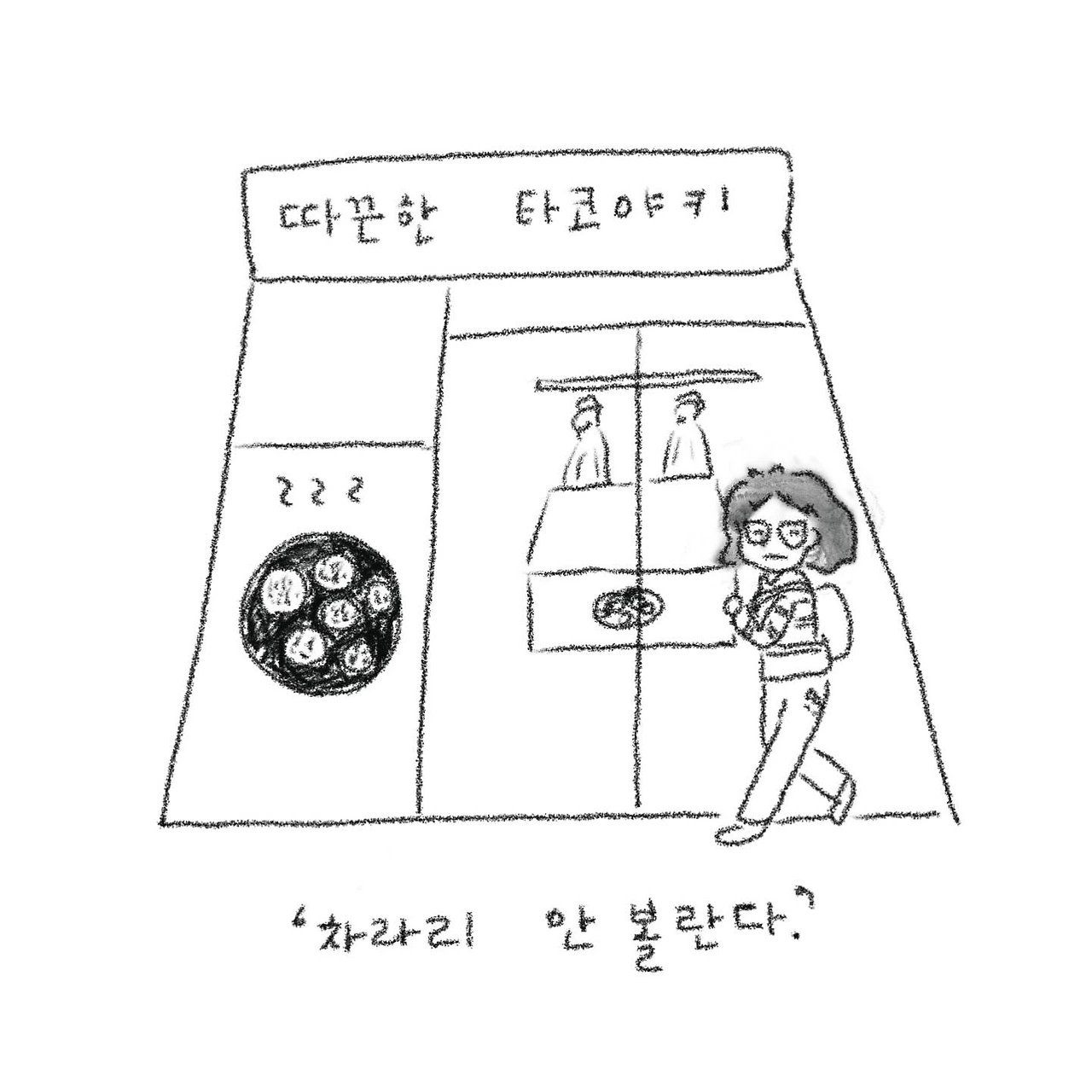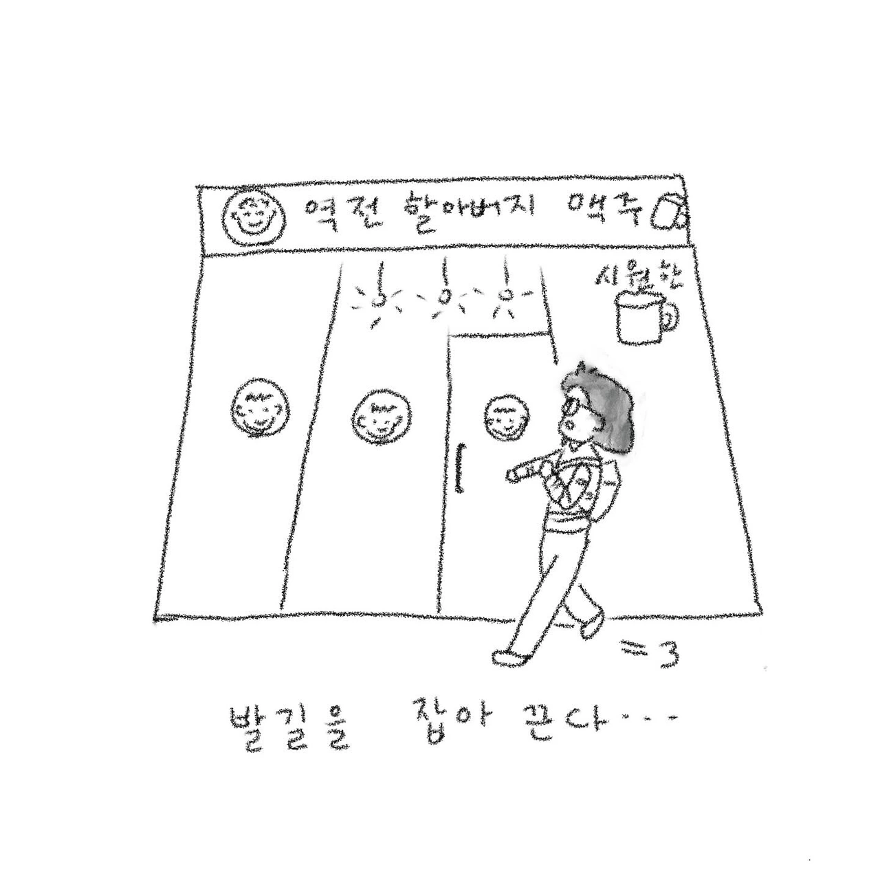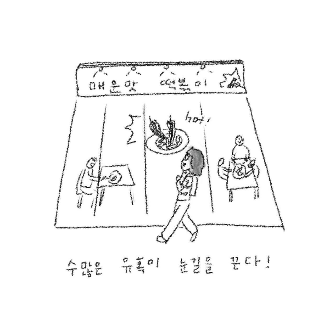 전철역에서 집까지 가는 길의 수많은 유혹에 대해서 그려봤어요. 오늘도 무탈히 지내고 포근한 저녁 맞이하시길요!
