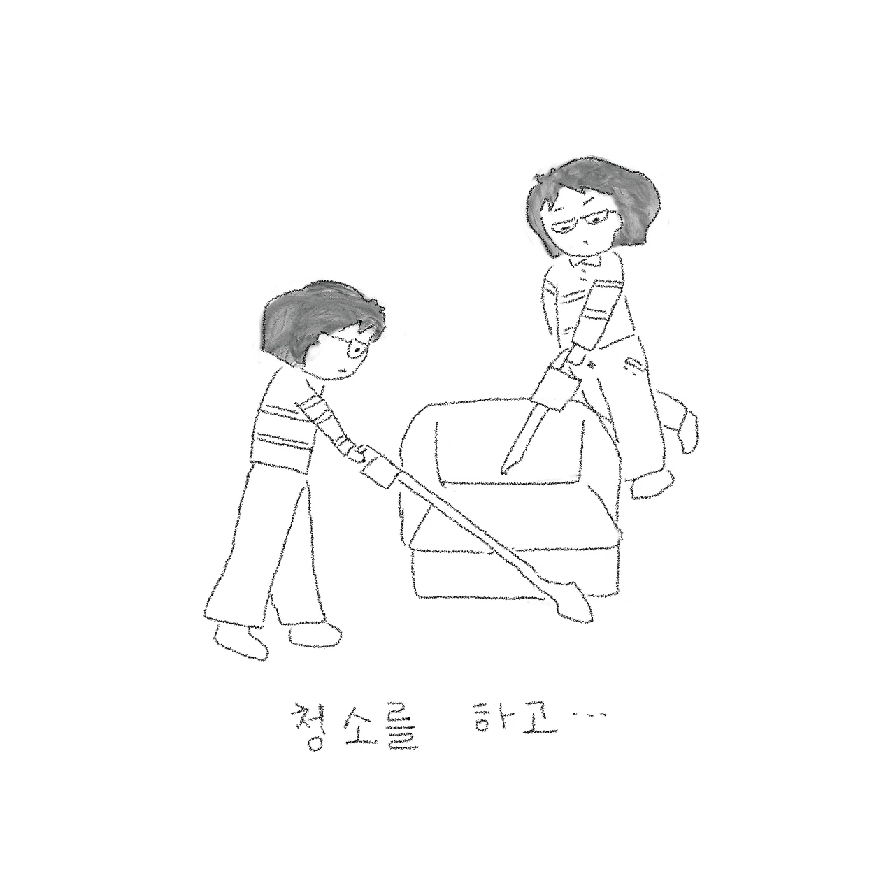 청소를 하고...