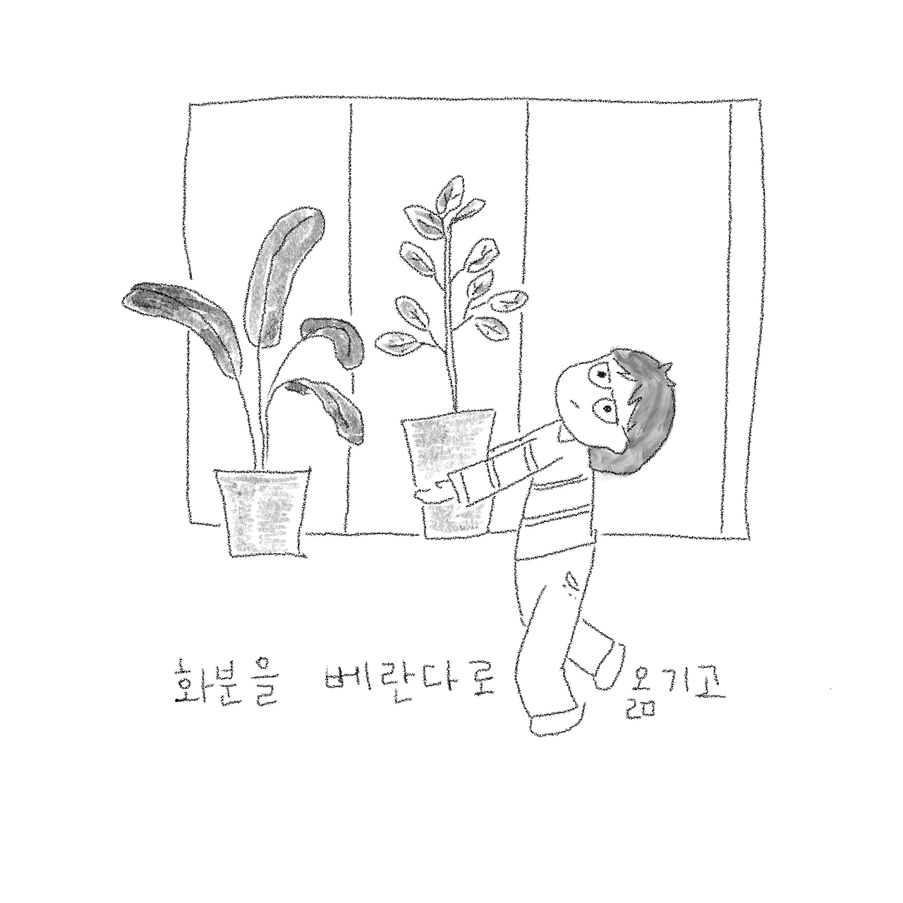 화분을 베란다로 옮기고