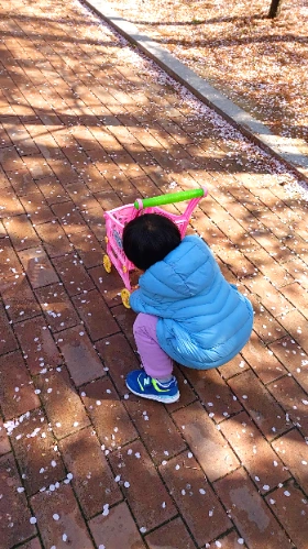 둘째 꼬맹이는 내 팔에 안겨 눈이야, 눈이야 소리 지른다. 파란 하늘, 떨어지는 꽃잎과 살짝 불어오는 바람.