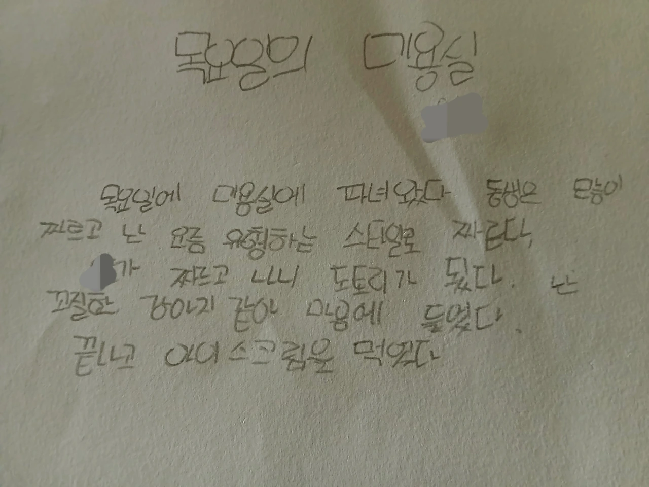 목요일에 미용실에 다녀왔다. 동생은 많이 자르고 난 요즘 유행하는 스타일로 자른다.