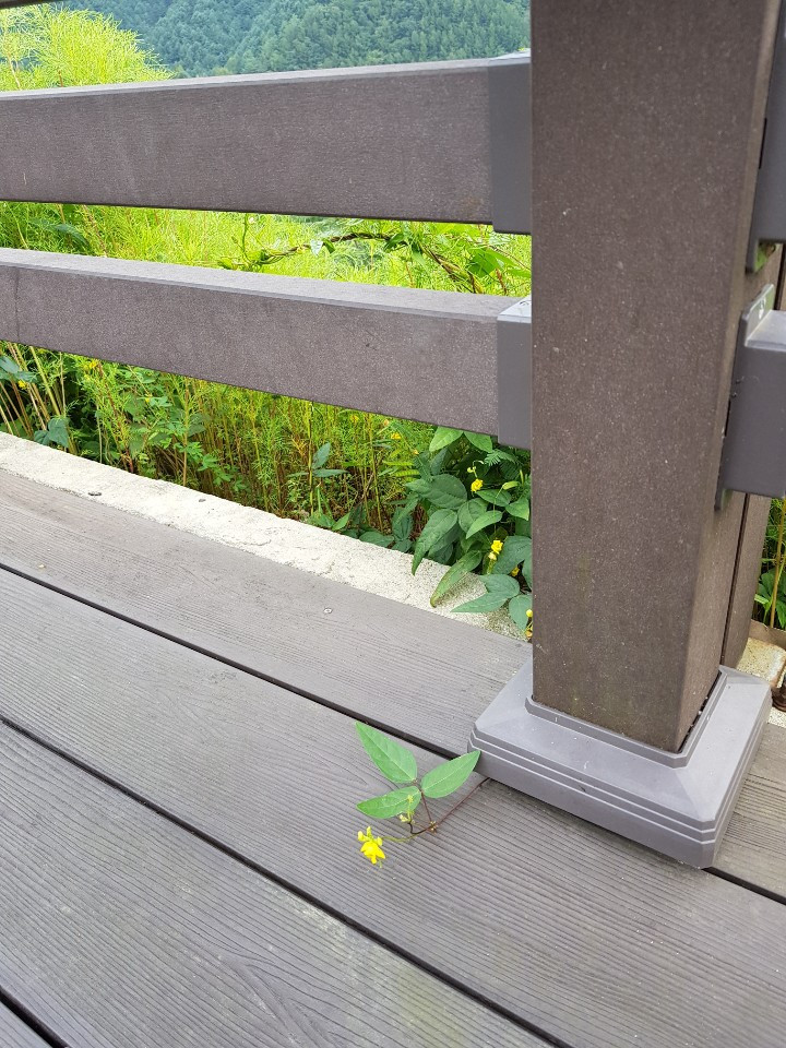 그런데 데크 발치 끝에 삐져나와 배시시 웃고 있는 노랑 풀꽃이 말을 건다.
