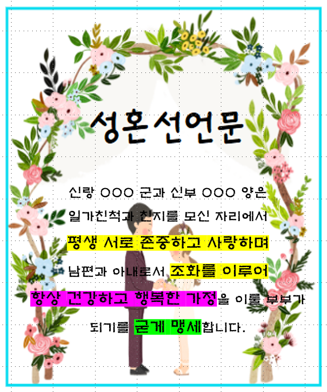 대부분의 혼례식에서 빠지지 않는 과정인 성혼 선언문을 부랴부랴 꺼내 들기로 했다.