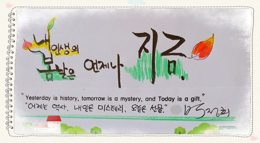 아울러 선물인 '오늘. 바로 지금'에 최선을 다하게 되었습니다.