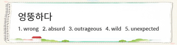 3. 'outrageous' 터무니없다는 엉뚱함? 터무니 있을 수도 있지. 4. 'wild' 거친 엉뚱함? 거칠 것 까지야.