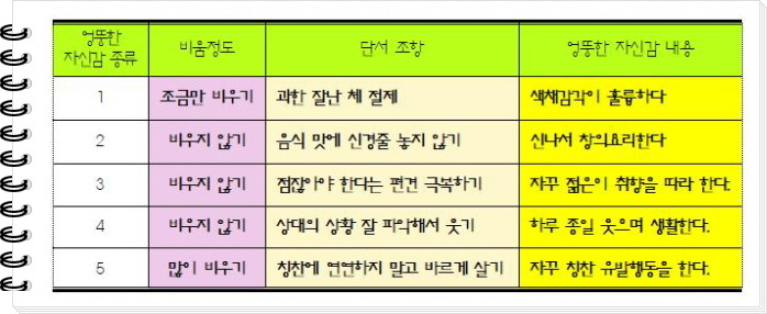 엉뚱한 자신감 5는 칭찬 유발 행동은 많이 비우되 칭찬에 연연하지 않는 의연한 자세로 바르게 살기.