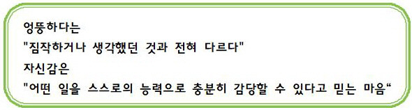 엉뚱한 자신감 용어 사용은 적절하다고 판단됨.
