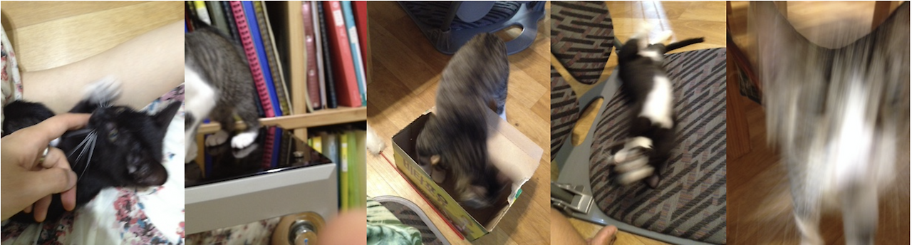 흔들린 사진 한 장도 버리진 못했다. 2014년 7개월간의 사진을 모으는 것만 했지 정리하는 것은 실패이다. 아마 나머지 9년의 사진도 모으는 정도가 최선일 것 같다. 루카(턱시도)가 흔들린 사진은 그야말로 검정 더미가 지배하는 알 수 없는 현대미술 같다. 아띠(고등어)는 뭔가 얼룩진 무늬의 벽면 같고. 그런데도 나는 그 사진을 버릴 수가 없다. 집사들은 이 마음을 알 것이다. 왜 나와 당신들이 아이들 사진을 한 장도 버릴 수가 없는지.