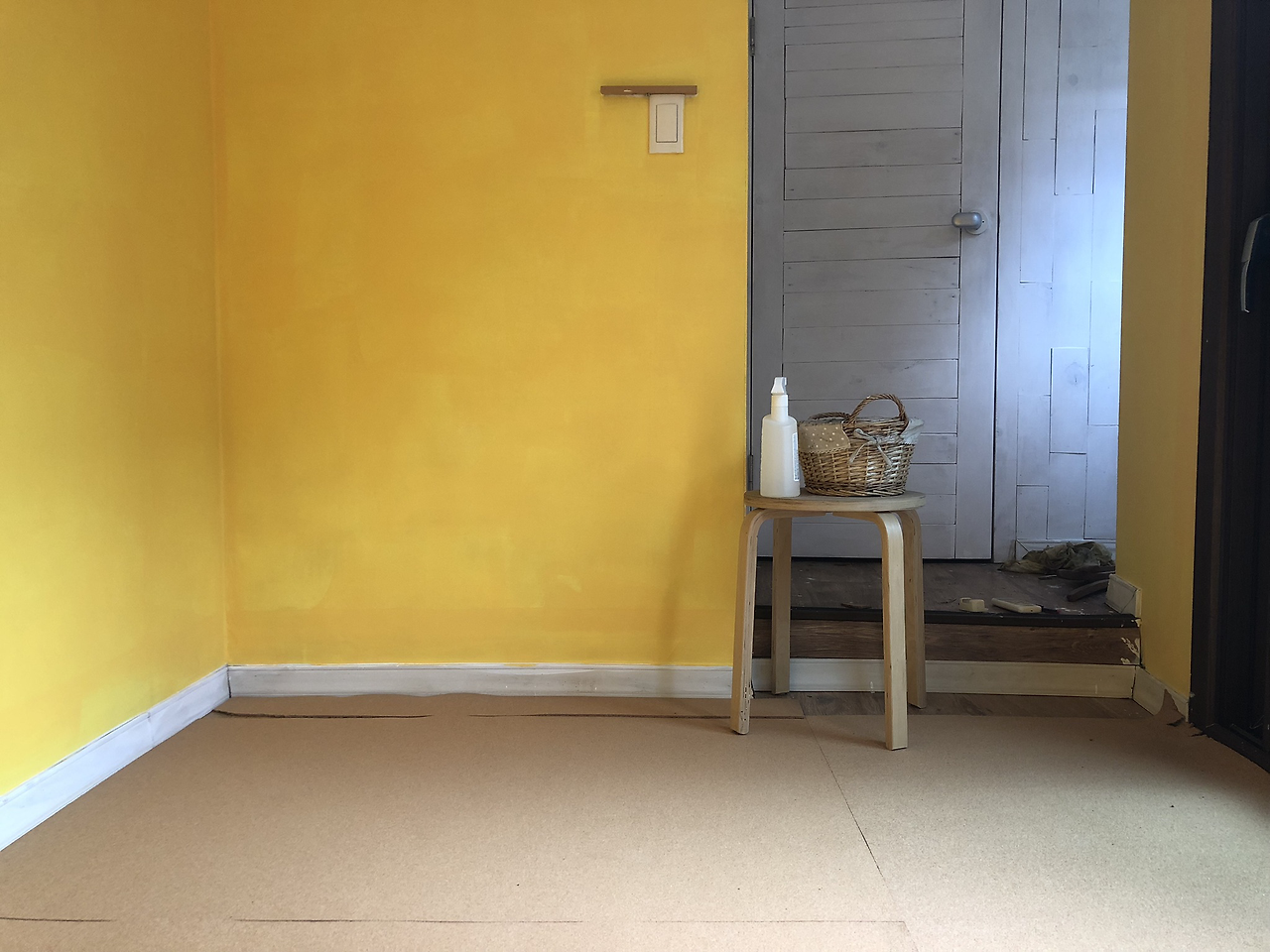 바닥은 코르크를 깔아 느낌을 살펴 보았다.,