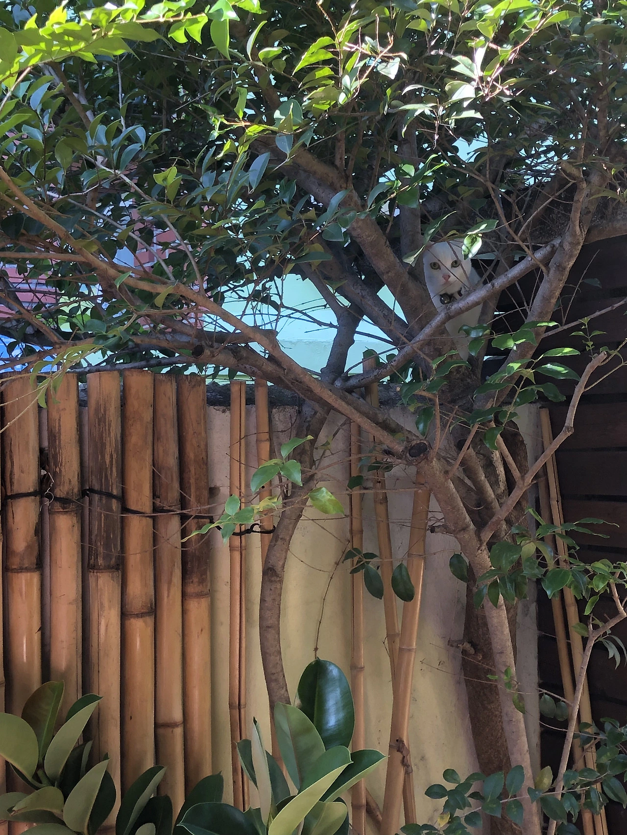 방울 소리가 들렸다. 일정한 주기로 계속 들렸다. 한 시간은 지속된 것 같다. 베란다 문을 밀어 바깥을 확인했다. 뭔가가 느껴졌다. 대문 옆 나무 가지들과 담벼락이 만나는 곳. 가지 사이 담 위에 뭔가가 보였다. 고양이였다. 흰고양이.