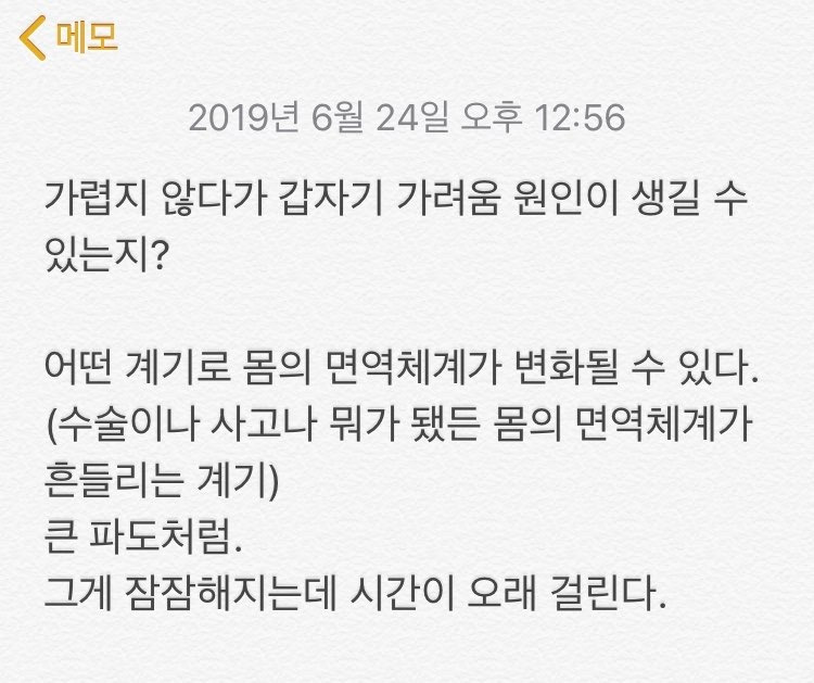 - 그게 원인이 됐을 수도 있어요. 어떤 게 계기가 되면 몸이 큰 변화를 겪을 수 있는데 그 파도가 잠잠해지는데 시간이 오래 걸릴 수도 있어요.