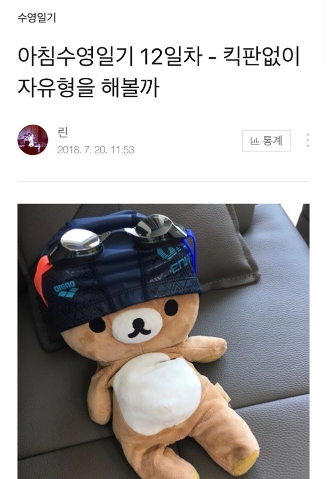 날마다 블로그에 수영 일기도 썼다. 강습이 없는 날에도 수영장에 가서 자발적으로 연습을 했다. 한 달쯤 지나선 같은 반 언니들에게 ‘아유 진짜 잘해!’ ‘수영 신동이야’ 같은 칭찬을 듣기도 했다. 초급반에서 오가는 듣기 좋은 칭찬인 것을 알지만 나는 그런 말 한마디면 신이 나서 물속을 더 오랫동안 춤추듯 날아다니곤 했다.