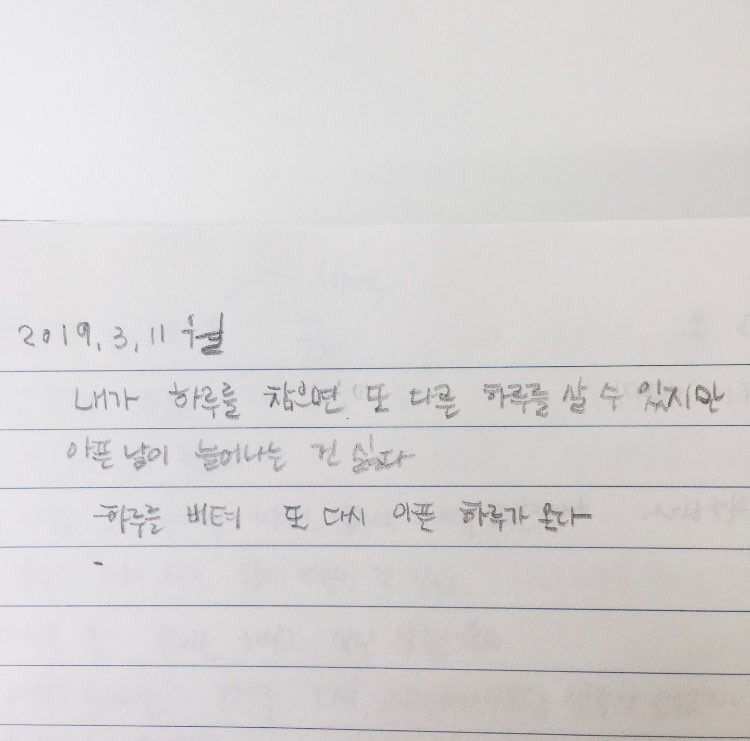 여보, 내가 이렇게 하루를 버텨. 근데 내일 또 아파.