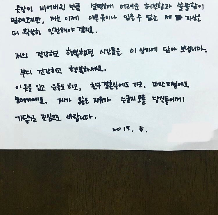 이 옷들은 저의 건강했고, 자유로웠던 시간들의 기록입니다. 언젠가는 다시 입을 수 있을 거라 생각해 쉬이 버리지 못했던 것들이지만 이젠 마음을 내려놓고 이렇게 다른 이들에게 보냅니다.