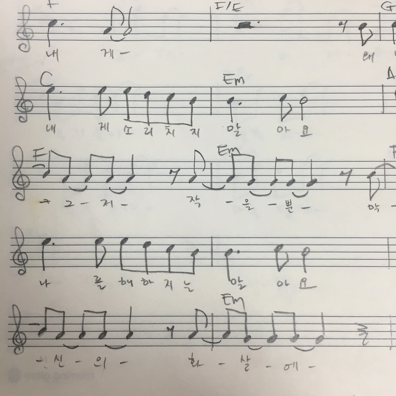 몇 년 후 노래를 만들어 부르기 시작했을 때, 그 3년의 기억으로 ‘화살’이라는 곡을 썼다. 나는 교사로 일하는 것이 숨을 곳 하나 없는 허허벌판에 방패 막도 없이 덩그러니 서있는 것처럼 느껴졌다. 너무 슬프기에 공연에서는 한 번도 불러본 적이 없다.