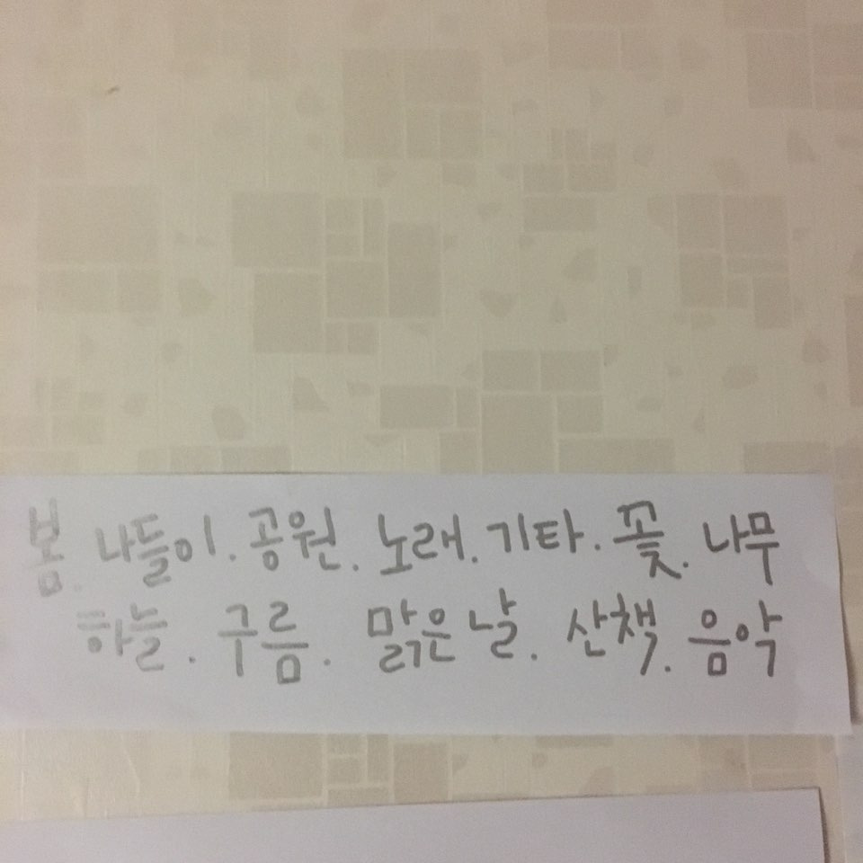 그때 나는 내가 좋아하는 것, 그리운 것들을 종이에 한 가득 적고는 벽에 붙여놓았다.
