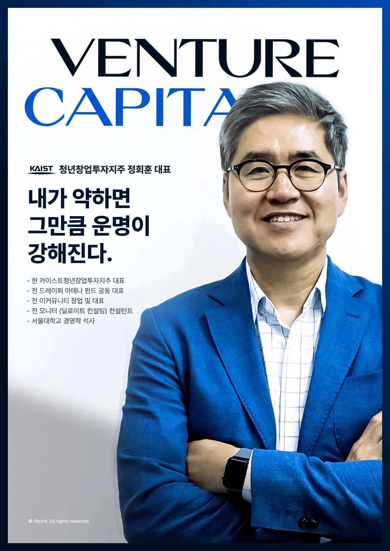 정회훈 카이스트 청년창업투자지주 대표는 만나본 VC 대표 중 가장 차분한 축에 속한다. 빠르게 바뀌는 스타트업계에서 중심을 지키기 위해 긍정적 사고 방식과 정신 수양을 강조하는 그에게서 마음가짐이 얼마나 중요한지 배울 수 있다. 내 인생의 빌보드에 한마디를 적어달라는 질문에 절제와 금욕을 강조하던 스토아학파 철학자 세네카의 명언을 선택한 것만 봐도 그의 단단한 심성을 엿볼 수 있다.
