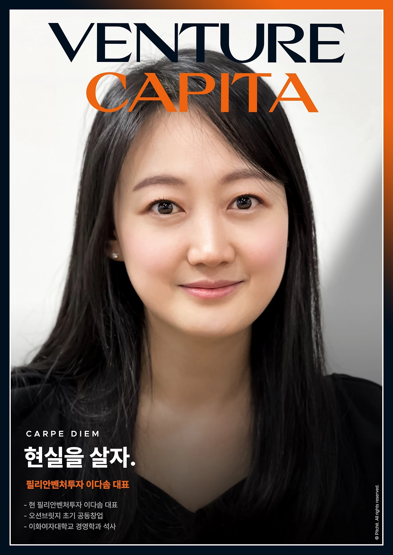 필리안벤처투자 이다솜 대표는 외유내강이라는 말이 굉장히 잘 어울리는 사람이다. 아버지와 함께 창업해 회사를 IPO까지 성장시켰음에도 멋이나 화려한 문구보다는 현재에 충실하고 현실을 있는 그대로 마주하는 솔직한 태도를 가장 중요한 덕목으로 꼽는 등 겸손함을 갖추고 있다. 창업자 출신 이다솜 대표와의 인터뷰를 통해 현실에 몰입하는 능력의 중요성을 배울 수 있다.