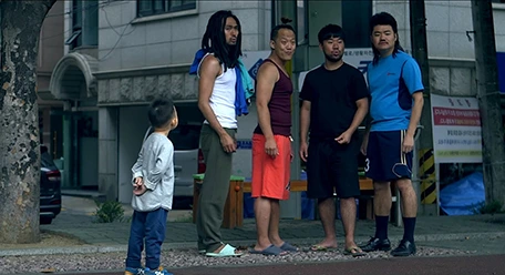 든든한 후원자도 없는 이들입니다. 오직 가오(자존심)만이 남아 있어 라면을 먹고 이를 쑤시는 예건, 그리고 매형의 지청구를 못 참고 일록은 홧김에 공장을 나와 버립니다. 노래 선곡도 안되 있어 그나마 돈을 벌고 있는 대용이가 사오는 치킨과 술을 축내면서 연습시간을 채웁니다. 누가 봐도 허름한 형편에 한번도 응원을 받지 못한 친구들입니다.