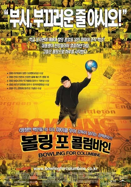 * 콜롬바인 참사 원인에 대해 전문가들은 헤비메탈과 폭력 영화. 사우스 파크. 비디오 게임. 마약. 마릴린 맨슨의 책임으로 돌렸다. 콜럼바인 참사의 주역인 에릭과 딜란의 집에서 록가수 마릴린 맨슨의 CD가 발견됐다는 이유 때문이다. 사건을 수사 중인 ‘스티브 데이비스’ 보안관은“걔들이 그날 아침 볼링을 했대요. 그거밖엔 몰라요!” 총이 불티나게 팔리는 곳 미시간. 얼마 후 참혹한 총격사건이 또 하나 터졌다. 초등학교 1학년 아이가 학교에 총을 들고 와서 같은 반 여자아이를 쏜 것이다. 비극이 발생 한 날 아침 볼링을 했다는 사실에 포착해서 만든 마이클 무어의 다큐 <볼링 포 콜롬바인>은 감독은 타인에 대한 공포와 적대를 생산하는 미국의 국내외 정책이 사건의 진짜 원인이라고 주장한다. 미국은 1953년 이란의 모사디크 정권을 전복시키고 독재자의 집권을 도운 것을 시작으로, 과테말라(1954), 베트남(1963), 칠레(1973), 살바도르(1977), 니카라과(1981), 이라크(1982), 이란(1983), 파나마(1989), 이라크(1991), 수단(1998), 그리고 탈레반(2000-2001)에 군사적 공격을 가했다. 아울러 자국에서는 원주민 인디언을 학살하고 핏자국이 얼룩진 땅 위에서 ‘아메리칸 드림’의 깃발을 꽂았다.