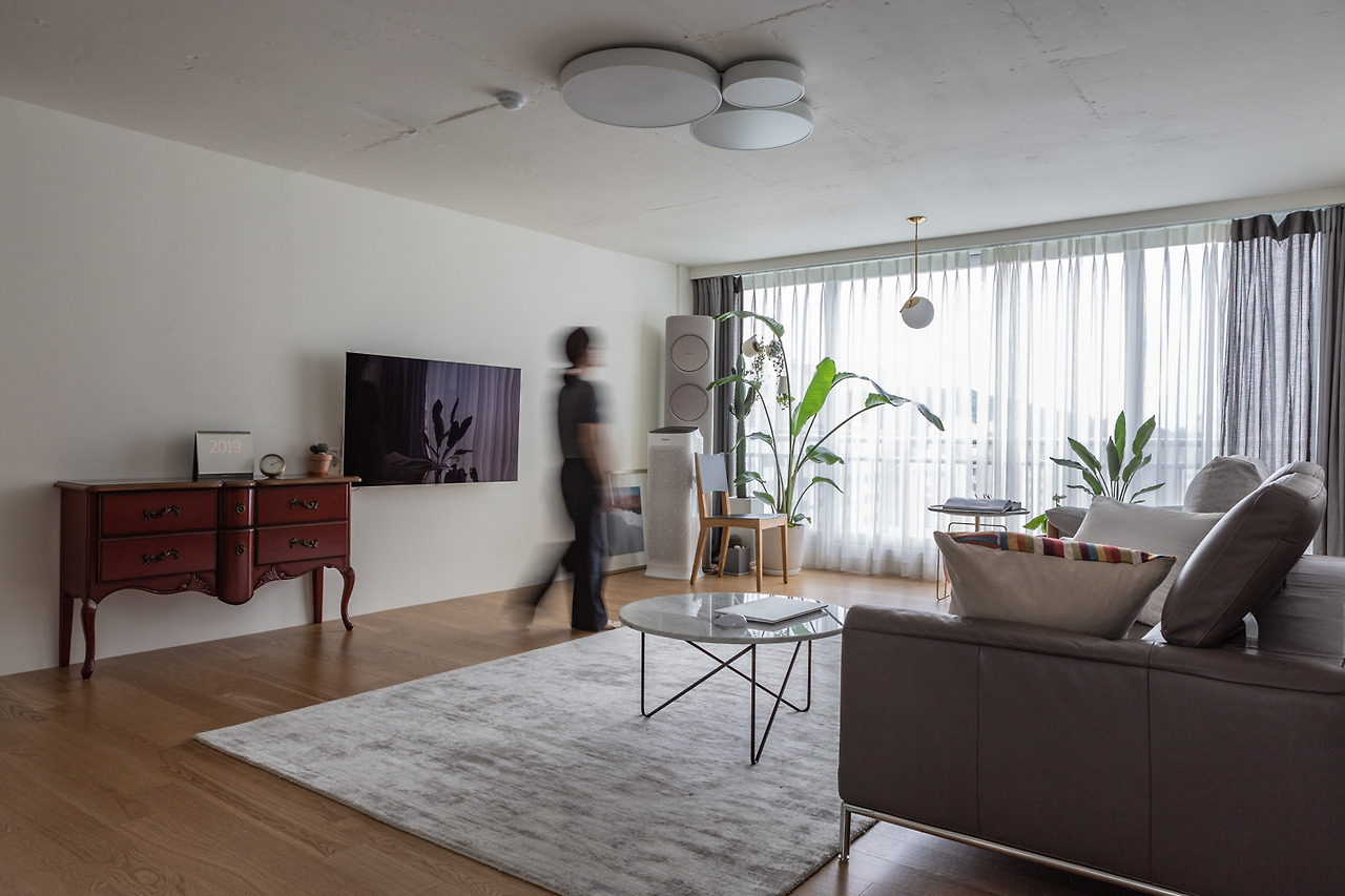 창으로 들어오는 자연광만을 이용하여 촬영하기도 하고, 실내 등을 함께 이용하여 촬영하기도 합니다. 후반작업이 가능한 디지털 사진촬영에서는 둘 다 선택적으로 활용할 수 있습니다. 전문지식을 가지고 촬영하는 사진가와 함께 인테리어 촬영을 진행한다면 디자이너의 선택에 따라서 자유롭게 촬영할 수 있습니다. 다만 빛의 색이 섞인다는 것을 알고 있어야 합니다. 경우의 수가 더 많아지는 것입니다.
