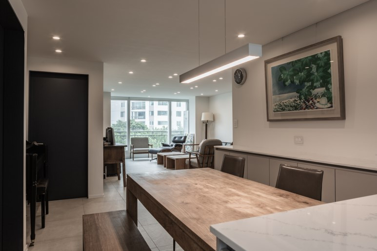 색감 표현이 자유로운 창의적인 인테리어 사진 촬영에서는 문제없지만, 원래의 색을 명확하게 표현해야 한다면 실내 등(인공조명)과 자연광을 혼합해서 촬영하는 것은 피해야 합니다. 실내등을 끄고 촬영하는 이유는 두 가지로 나눌 수 있습니다. 첫 번째는 색의 섞임 현상을 최소화하기 위함이고, 두 번째는 시선의 분산 및 이동을 통제하기 위함입니다. 우리 눈은 가장 밝은 곳부터 찾아갑니다. 실내등 때문에 표현하고 싶은 디자인 요소가 눈에 잘 포착되지 못할 수도 있습니다. 실내등이 디자인의 핵심 요소라면 실내등을 켜고 촬영하는 것이 당연히 필요하겠습니다.
