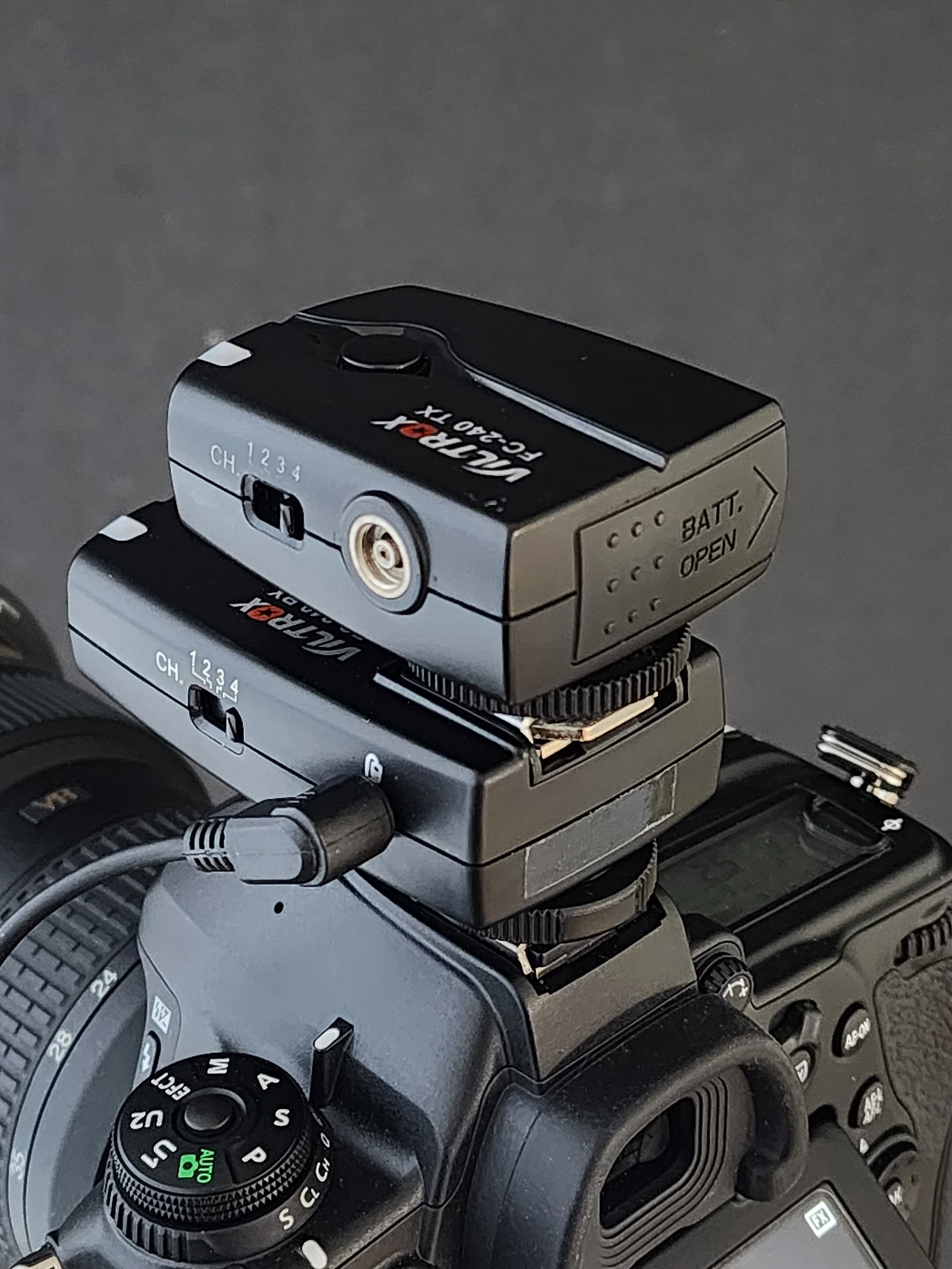 호루스벤누의 무선동조기를 무선리모컨으로 장착한 사진입니다. 어떤 카메라던지 이 방식을 활용하실 수 있습니다. 제조사별도 제공하는 무선리모컨을 활용하셔도 됩니다.