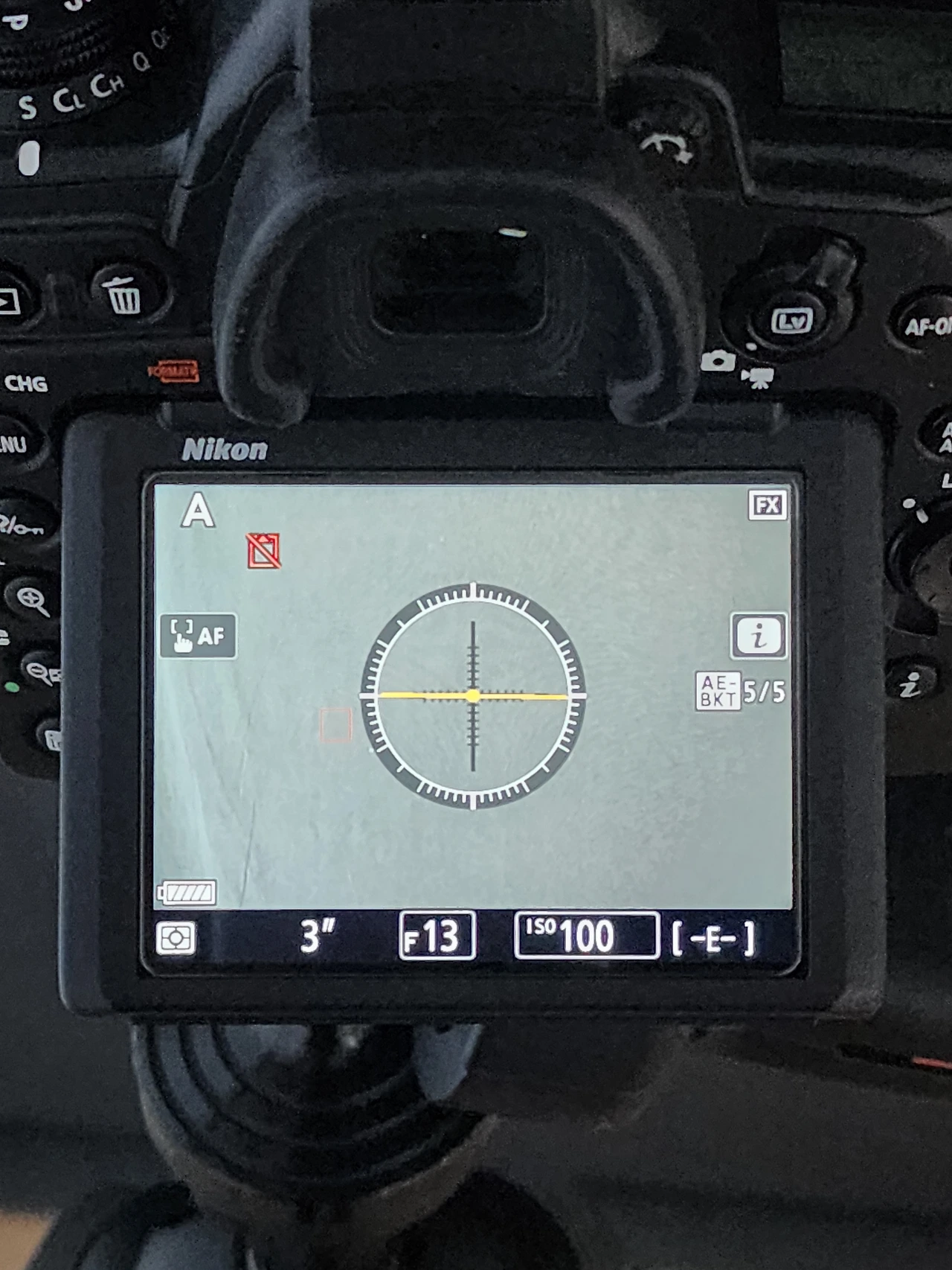 오른쪽 화면 하단을 보면 f/13 ISO 100이라고 설정되어 있습니다. 조리개값은 f/11~16 범위 내에서 선택하시고, ISO는 100으로 고정하세요. 이렇게 선택하셨다면 브래킷 촬영으로 3컷 이상 연속 촬영하세요. 적정노출보다 어둡게 한 두 컷, 카메라가 생각한 적정노출로 한 두 컷, 적정노출보다 밝게 한 두 컷, 이렇게 브래킷 촬영하세요. *카메라는 셔터스피드만을 조절해서 각기 다른 노출의 사진을 완성하게 됩니다. (그래서 장기노출 시 노이즈 감소 기능을 On으로 설정했습니다.)