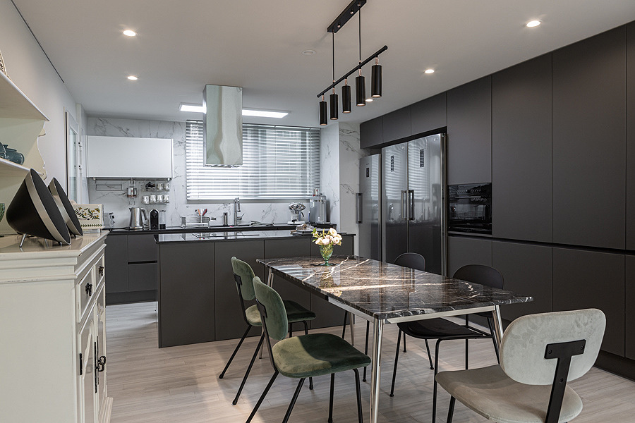 초광각렌즈를 사용하면 넓은 범위를 한 번에 담아낼 수는 있지만, 눈으로 보는 것과 다른 왜곡을 피할 수는 없습니다. 넓어 보이는 효과 때문에 현장에서는 초광각렌즈 사용을 대부분 더 선호하고 저 역시 주로 그렇게 상업촬영을 진행하게 됩니다. 하지만 현실감 있는 표현을 유지하면서 더 많은 범위를 한 번에 보여주고 싶다면, 파노라마 촬영으로 왜곡을 최소화해서 촬영할 수 있습니다. 넓은 영역을 한 장에 담아낼 수 있고 원근왜곡과 벤딩을 최소화할 수 있어서 촬영은 까다롭지만 개인적으로 선호하는 촬영법입니다.