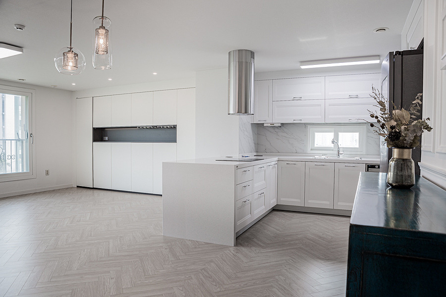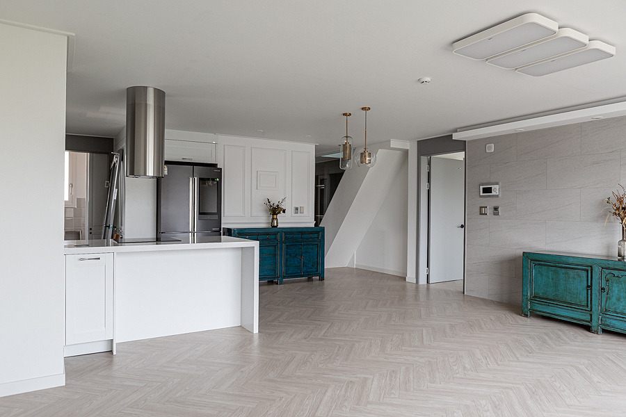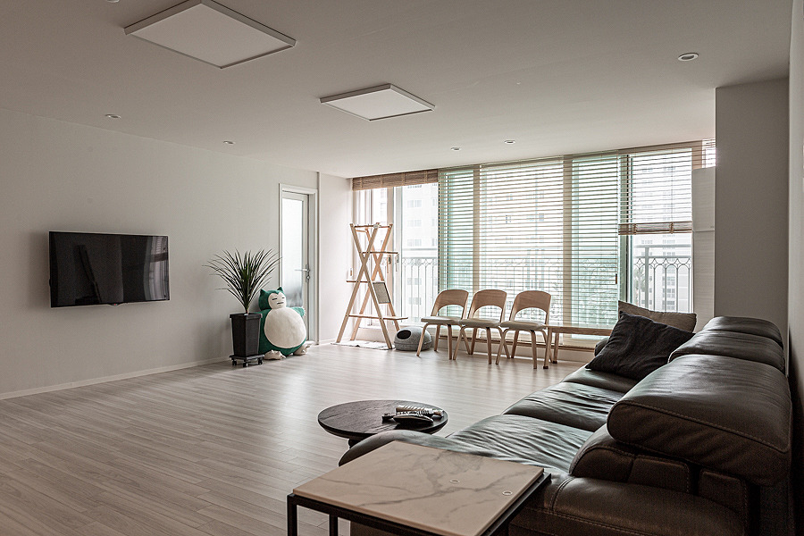 개인적으론 왜곡을 피하는 촬영을 선호합니다. 특히 인테리어 디자이너를 위한 촬영에서는 숙박시설과 달리 넓어 보이는데 초점을 맞추기보다는 우리 눈이 보는 것과의 이질감을 최소화하는 것을 선호합니다. 사실 저는 숙박시설도 렌즈의 짧은 초점거리를 이용해서 한 번에 넓게 보이는 왜곡을 좋아하지는 않습니다. 장단점은 분명히 있습니다. 현실적으로 의뢰받은 공간 촬영은 대부분 16mm~20mm 정도의 광각으로 촬영하게 되긴 합니다. *20mm보다 큰 숫자의 초점거리를 가지는 렌즈를 사용하면 지나친 왜곡은 어느 정도 해소됩니다. 하지만 그만큼 넒어보이는 효과는 줄어듭니다.
