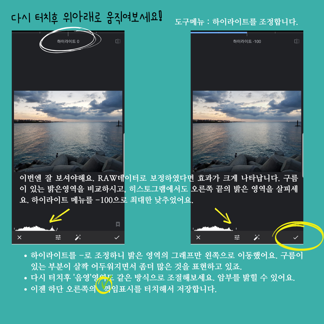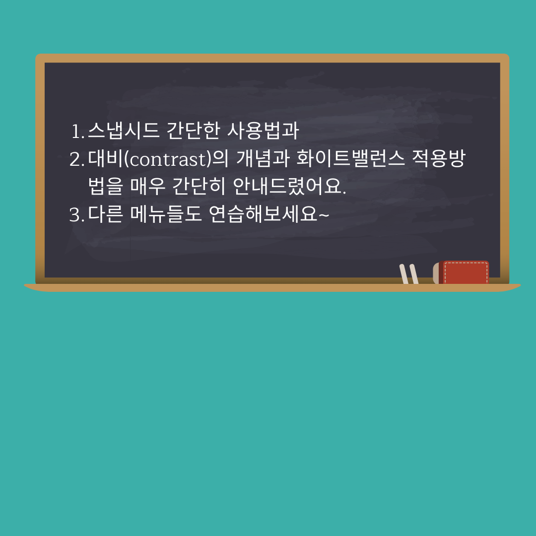 이번엔 히스토그램과 대비, 화이트밸런스를 스냅시드라는 프로그램에서 어떻게 활용하는지 살펴봤어요. 매우 간단한 사용법만을 안내드렸어요. 히스토그램, DR, HDR, 화이트밸런스, 대비 등에 관한 좀 더 상세한 이야기는 다른 포스팅을 참고해 주세요~