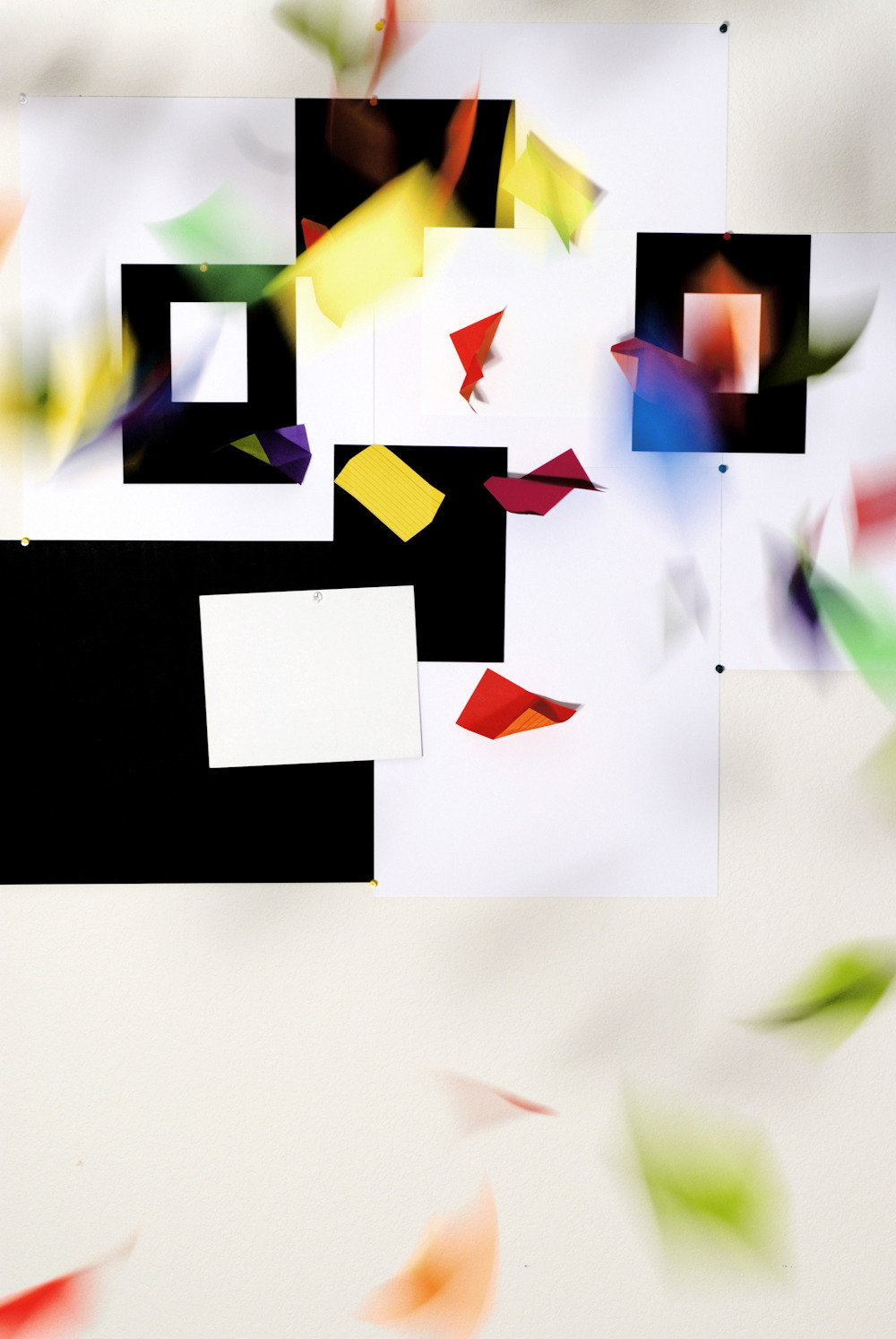 두 번째 사건은 숙제를 발표하는 크리틱 시간에 벌어졌죠. 지난주 수업이 끝날 때 학생들은 제비뽑기를 했어요. 종이엔 유명한 예술가들이 적혀있었어요. 어떤 작가가 걸릴지 몰라요. 두 작가를 무작위로 뽑는 거예요. 전 칼더(Alexander Calder)와 몬드리안(Piet Mondrian)이 걸렸어요. 숙제는 두 작가의 작품을 감상하고 작가에 대해서 조사한 후 두 작가의 에센스만을 뽑아서 '하나의 사진작품'으로 완성해서 표현하는 것이었어요. 전 칼더와 몬드리안을 조사하기 시작했어요. 우연히 두 사람의 일화를 접하게 되었죠. 칼더는 모빌을 만든 예술가예요. 모빌은 늘 움직이죠. 늘 변화해요. 머물러 있지 않죠. 머물러 있다고 생각해도 시간에 따른 빛의 변화는 모빌을 움직이게 해요. 움직임과 자연이 만들어준 우연성에 대해서 생각하는 칼더가 몬드리안의 작업실에 들러서 몬드리안의 작품을 보고선 '움직임'이 필요하다고 훈수를 두는데, 몬드리안은 '내 작품은 충분히 움직이고 있다'라고 응수하죠. 기 싸움이 느껴졌어요. 이 일화를 접하고선 전 사진작품으로 두 사람을 화해시켜야겠다고 생각하고 작품을 구상했고, 위의 세 작품을 만들어서 크리틱 시간에 제출했어요. 이미 두 작가의 에센스를 뽑아서 하나의 작품으로 만드는 것이 숙제였기 때문에 더 이상 할 말이 없었어요.