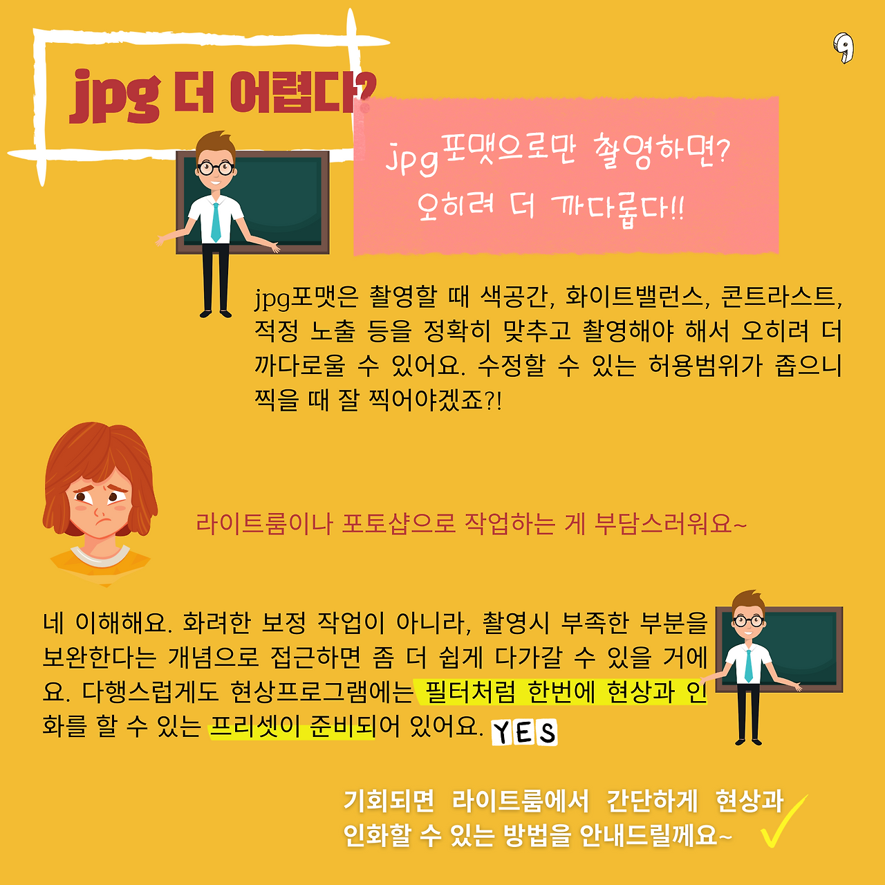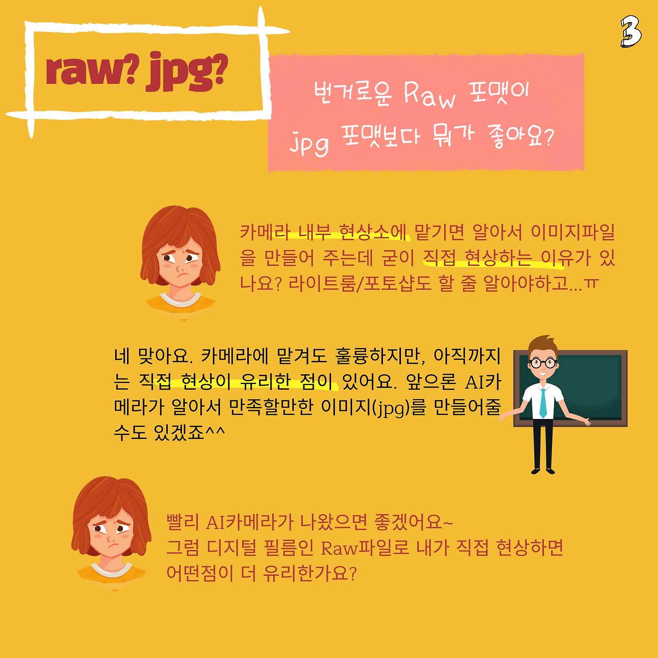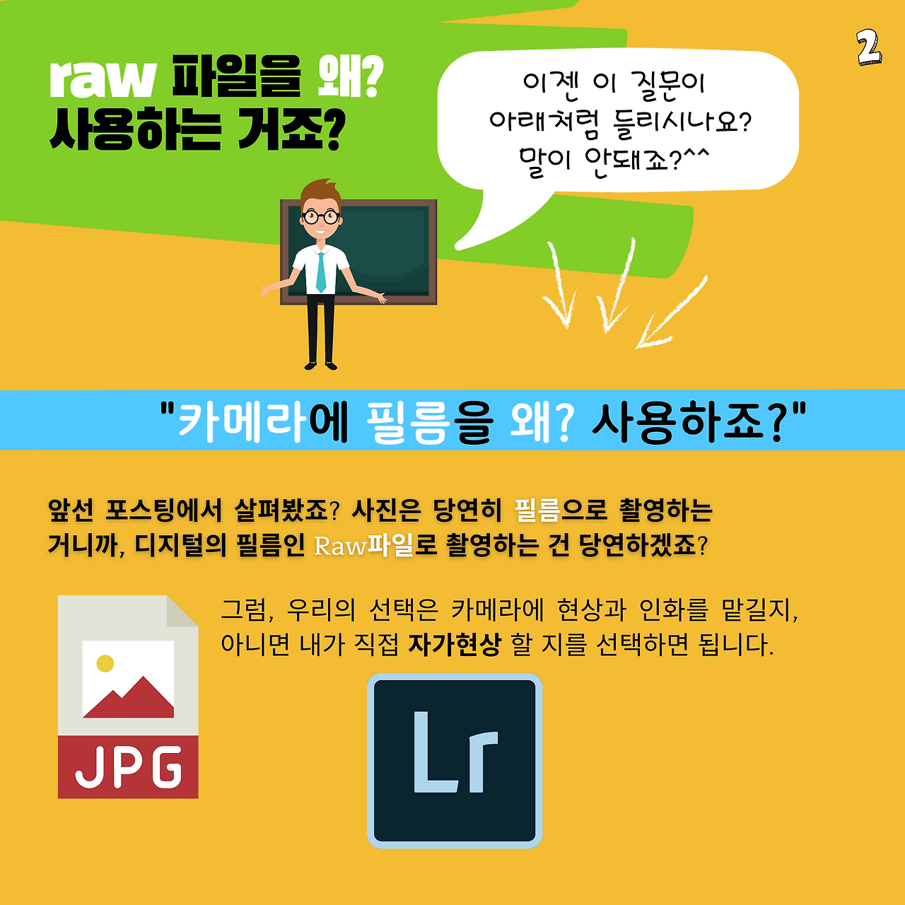 앞선 포스팅을 살펴보셨다면, RAW파일을 왜? 사용하는 거죠?라는 질문은 개념적으로 이상하게 들릴 수도 있습니다. 카메라에 필름을 사용하는 건 당연하니까 말이죠.^^