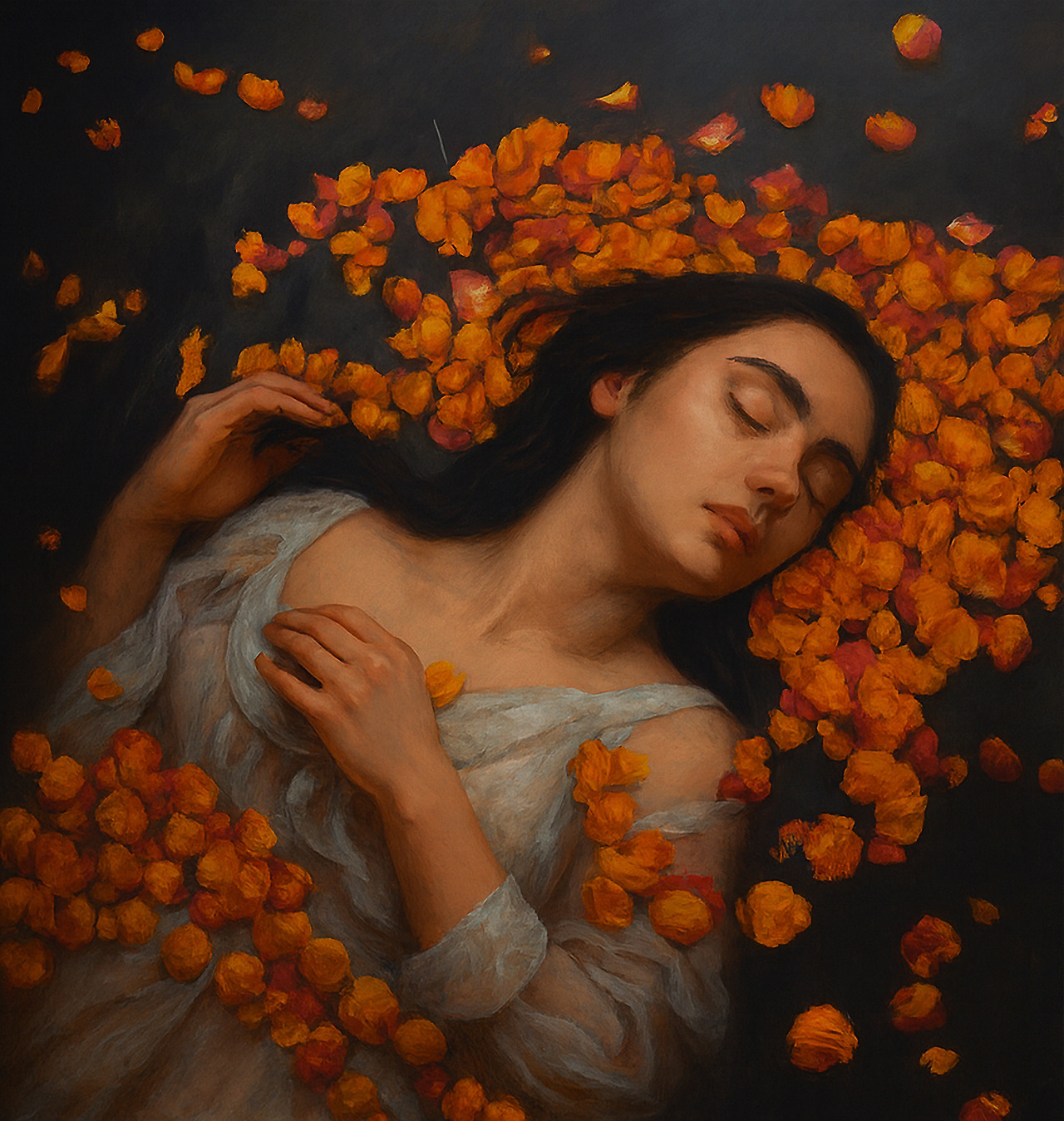 그때의 그림과 지금의 그림의 차이를 면밀히 살펴보았습니다. 애매한 오른손 처리를 명확히 그렸습니다. 지금의 지피티도 제가 보는 눈처럼 오른손은 위로 올라가 보였던 것 같습니다. 가슴에 모은 오른쪽 손과 위로 올린듯한 손모양 중에 제 눈에도 위로 올린 손 모양이 더 자연스레 느껴집니다. 예전보다 소매는 좀 더 걷어 올려서 그렸습니다. 사진을 하는 저에겐 아무 동의할만한 변화입니다. 제가 이 장면을 모델과 연출해서 촬영한다고 하면, 예전사진의 소매처리는 답답해서 오른쪽 그림처럼 소매를 좀 더 걷어 올리고 촬영했을 듯합니다. 시스루의 디테일도 훨씬 좋아졌네요. 속눈썹에 바른 마스카라와 눈썹표현도 섬세해졌습니다.
