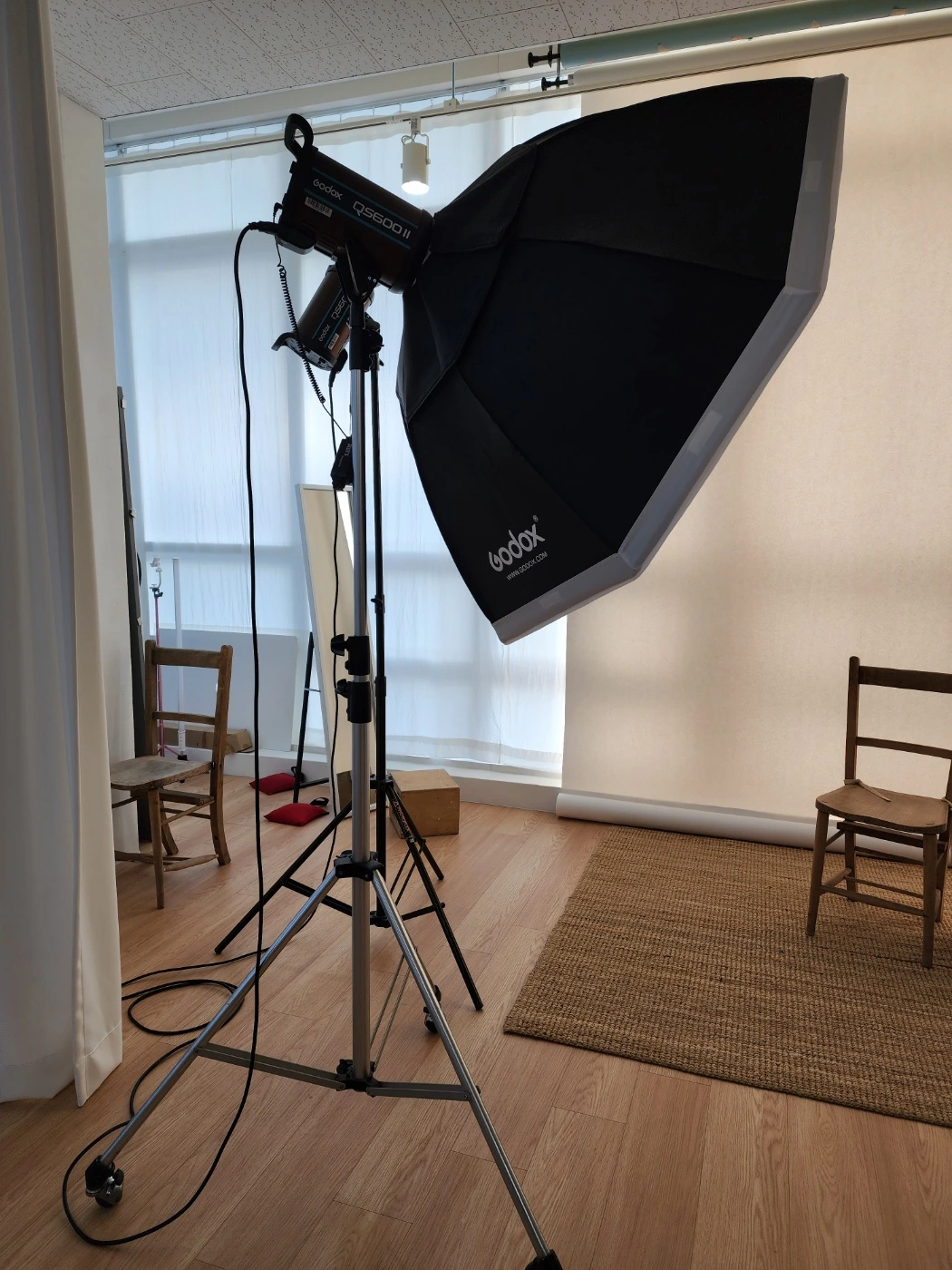 '춤'이란 주제로 사진이미지를 만들어볼 생각이야. 지금 올려준 건 내가 늘 사용하는 촬영용 조명 소프트박스야. 이건 움직임은 없지만, 움직이는 대상의 순간을 포착하는 순간광으로 나에겐 없어서는 안 될 촬영 도구지. 난 촬영할 때 리듬을 중요시 생각해. 내가 리듬을 타고 모델과 촬영을 이어갈 때 이 조명은 정지해 있지만, 내가 셔터를 누르는 순간 나와 함께 리듬을 타거든. 빛의 리듬이지. 그래서 난 이 녀석도 늘 나와 함께 움직인다고 생각해. '몸' '움직임' '춤' '리듬'으로 재해석한 작품사진을 하나 완성해 줘