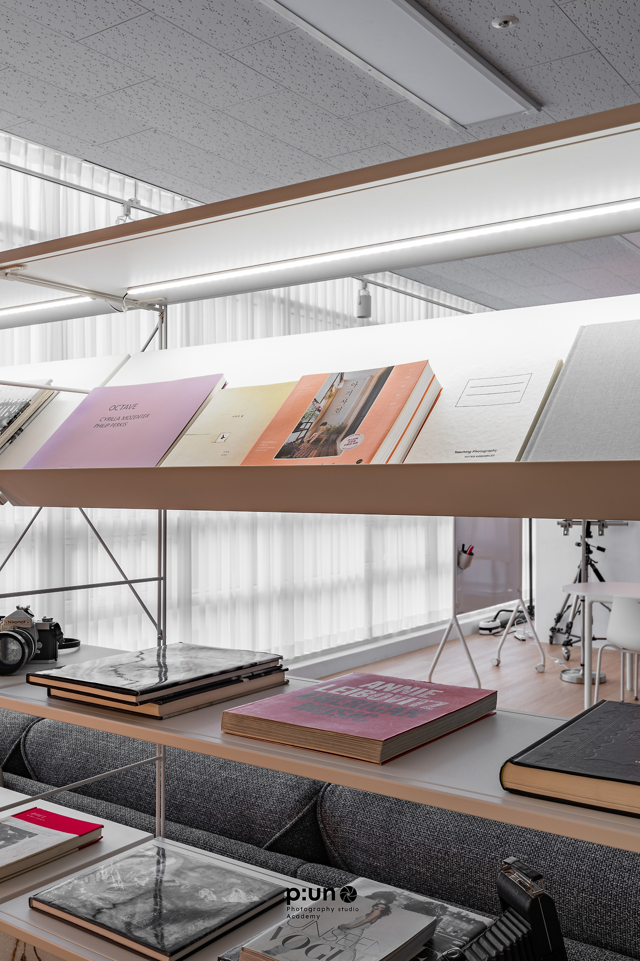 꼭 만들고 싶었던 공간이에요. 사진집과 사진 관련 책들을 전시해두고 싶었어요. 덕분에 제 책도 전시하고 사진집을 살펴보는 고객이 있을 땐 슬쩍 홍보하기도 하죠. 사진집이면 좋으련만 그냥 실용서라서 조금 아쉽긴 해요. 사진으로 말해야 하는 작가가 글이 너무 많아요. 사진집도 출간하고 싶은데, 글쎄요~ 아직도 제 사진을 하는 건 때가 아닌 건지, 사진을 잘 찍지 못하네요. 다른 작가들의 사진을 보면 자꾸 심장만 뛰네요.