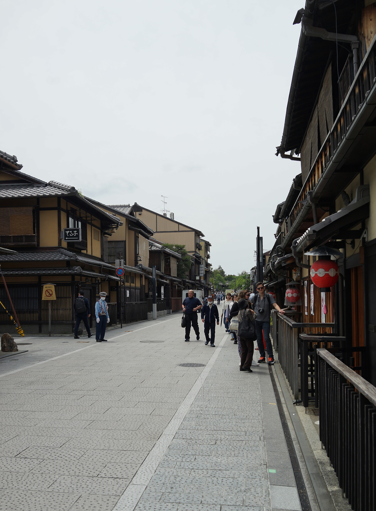 유심히 살펴 걷다 보면 동서 방향으로 난 골목 입구마다 요정이나 찻집의 하얀색 명패가 눈에 띈다. 드라마 ‘마이코네 행복한 밥상’에선 골목 안 쪽 풍경이 그려지는 데 마치야 입구에는 그곳에 살고 있는 마이코의 명패도 걸려있다. 이 명패를 확인하고 싶어 들어가 보려 하는데 골목 분위기가 너무 평화롭다. 정갈하고 고요한 골목의 평온이 나를 막아선다. 마치 골목 입구에 결계라도 있는 듯 바라만 볼뿐 들어갈 수가 없다.