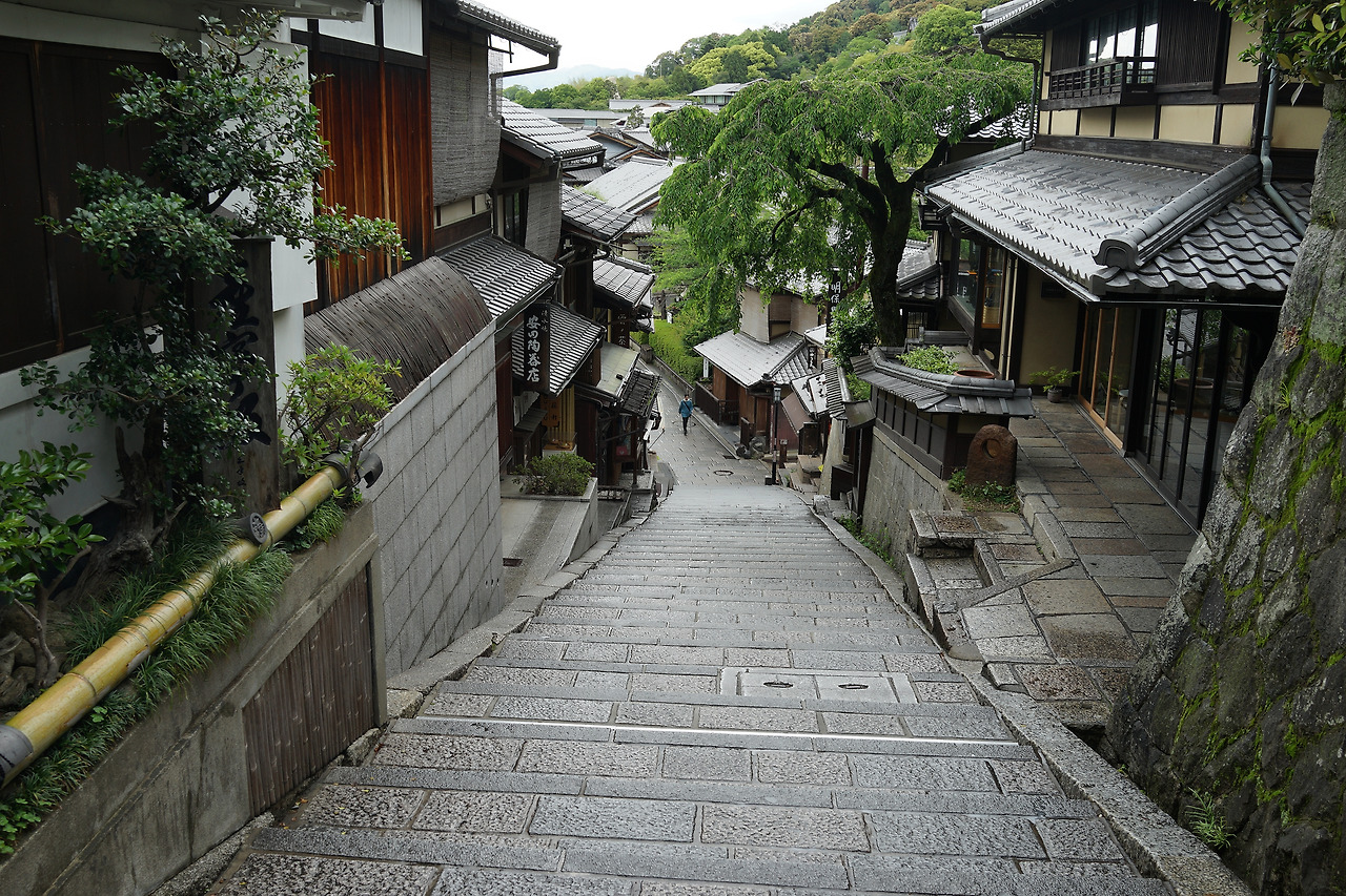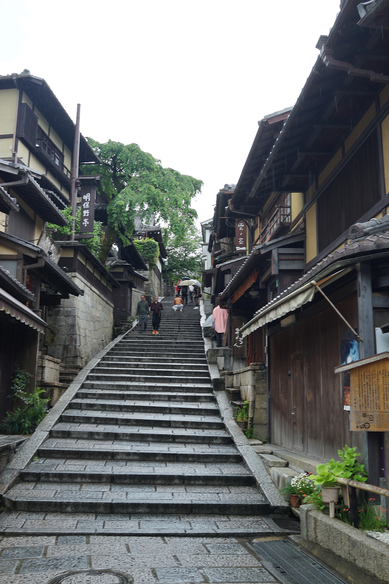 표주박까지는 사고 싶지 않아 비가 내려 살짝 미끄러운 길을 조심조심 발걸음을 옮겨 끝에 다다르니 니넨자카처럼 계단이 있고 계단을 모두 오르고 나면 산넨자카는 끝이 난다. 그 끝에서 조마조마했던 마음에 숨 한번 뱉고 돌아서서 왔던 길을 바라보니 아이를 안고 있는 산모마냥 정겹고 이쁜 길이 눈앞에 있다. 이래서 유명한 거군.