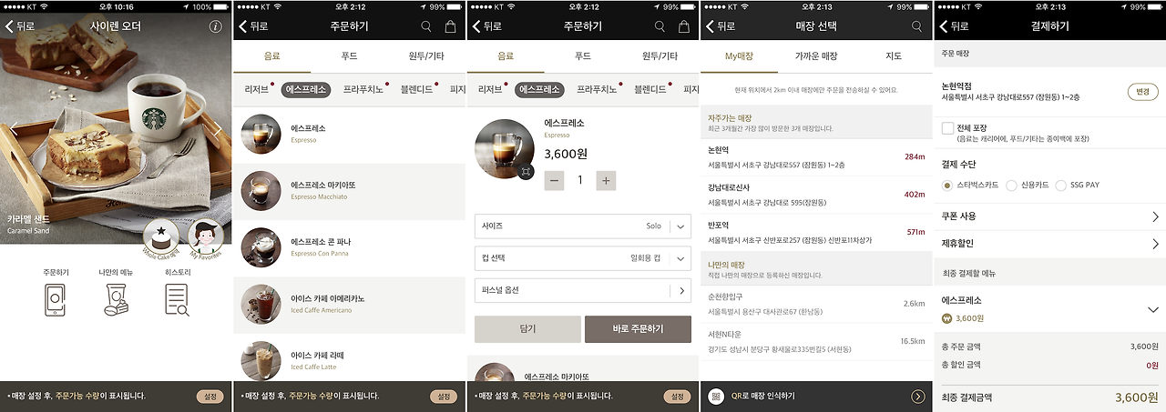 커피는 ‘나’의 마음대로 만들어진다. 에스프레소 샷, 우유, 시럽 등의 조절을 통해 내 입맛대로 커피를 주문할 수 있다. 커피만이 아니다. 앉은자리에서 편하게 주문도 할 수 있다.