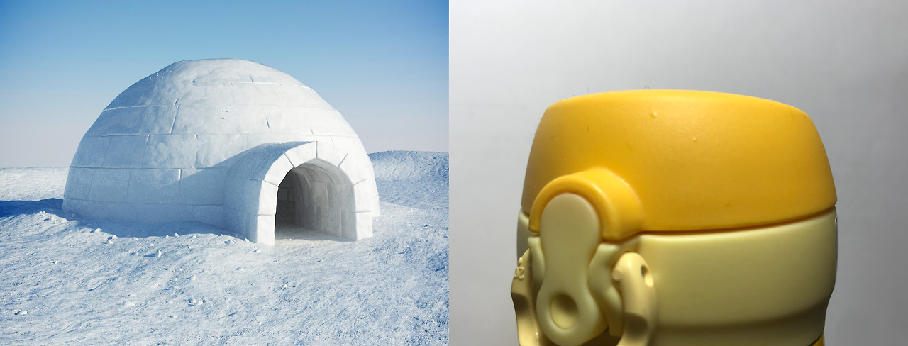 제임스 듀어가 문제 해결을 위해 번민하며 떠올렸을 법한 이글루의 모습이 제품 디자이너에게도 떠올랐던 것일까? 텀블러의 뚜껑은 이글루를 닮아 있었다. 써모스도 이글루도 모두 소중한 것을 지키고 있다고 제품이 말하고 있는 것처럼 보이는 것은 나만의 착각일까?