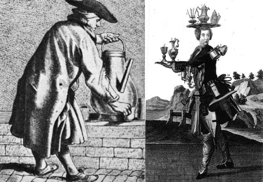 1690년 크레타섬 출신 칸디아(Condiot)는 하얀 앞치마를 두르고 바구니를 배 쪽으로 고정하고는 커피 주전자를 들고 행상을 나서서 ‘커피요’ 하고 소리치며 다녔고 그 소리를 듣고 컵을 들고 나온 손님에게 커피를 따라주면서 장사를 했다.