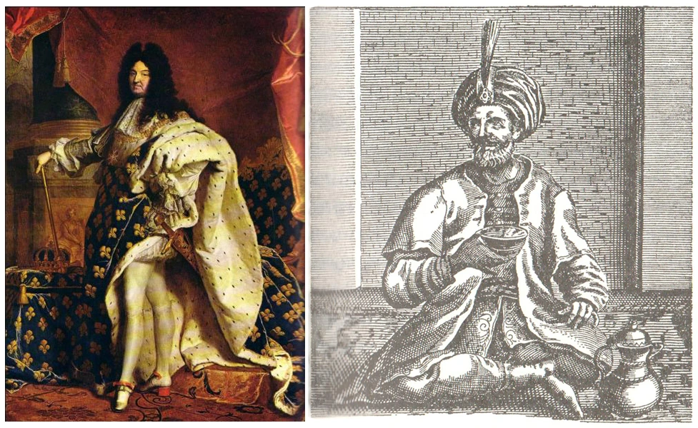 루이 14세 앞에 선 솔리만 아가는 소박한 무명옷을 입고 대조를 이루며 초라한 듯 서 있었다. 그가 가져 온 커피 기구가 보이기 전까지만 해도 그랬다.