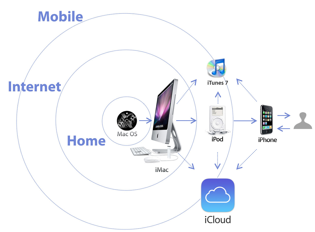 MP3 플레이어 iPod, iPod에 음악 콘텐츠를 제공하는 iTunes, 스마트폰 iPhone, 디바이스의 콘텐츠를 공유하는 iCloud 까지 새로운 서비스는 인터넷 연결을 기반으로 만들어집니다.